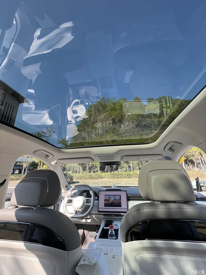 车内空间很充裕,尤其是头部空间和后排腿部空间,车顶天幕和后排侧窗标配电动遮阳帘防晒加分项,选装了后排电动沙发,座椅电动一键放倒很方便,好评…..