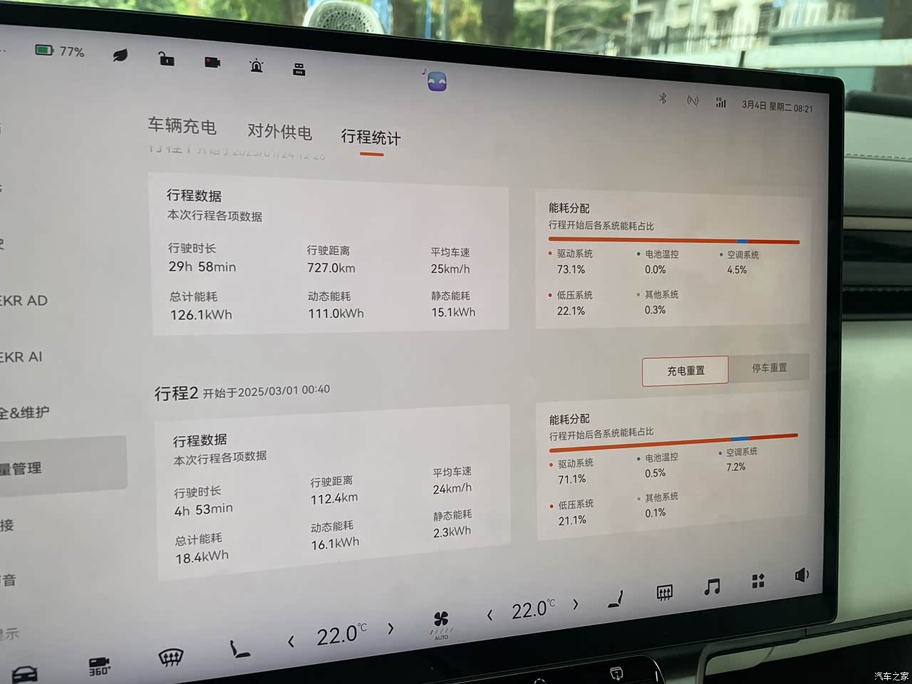 续航中规中矩吧,市区通勤,一半快速路一半拥堵路况,这段时间开百公里动态电耗基本在14-16度,算上静态电耗的话要加上1-2度。快充速度很快,上次极氪超充站充电10%-100%用了半个小时,第三方快充暂时还没用过。