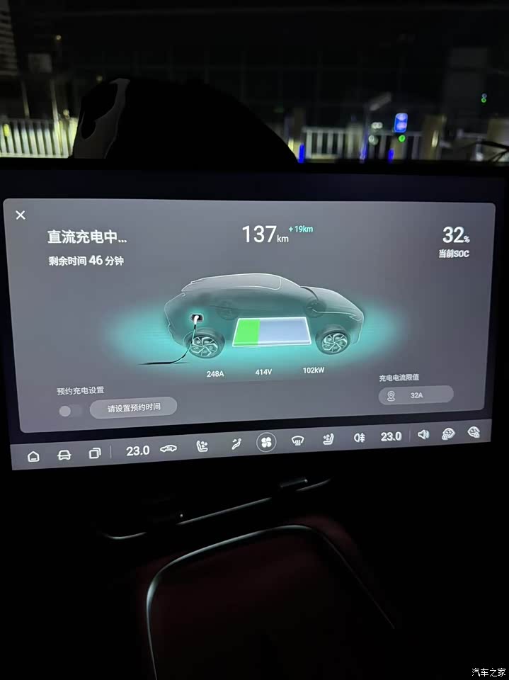续航的话官方215km纯电续航,但是wltc表显是190,9月提车那会儿还很热,开制冷空调实际能跑185KM左右,满足我每天50km的通勤需求,每周充两次电。充电速度还可以,坐车上玩两把游戏,或者在零重力座椅上按按摩电就充满了。
