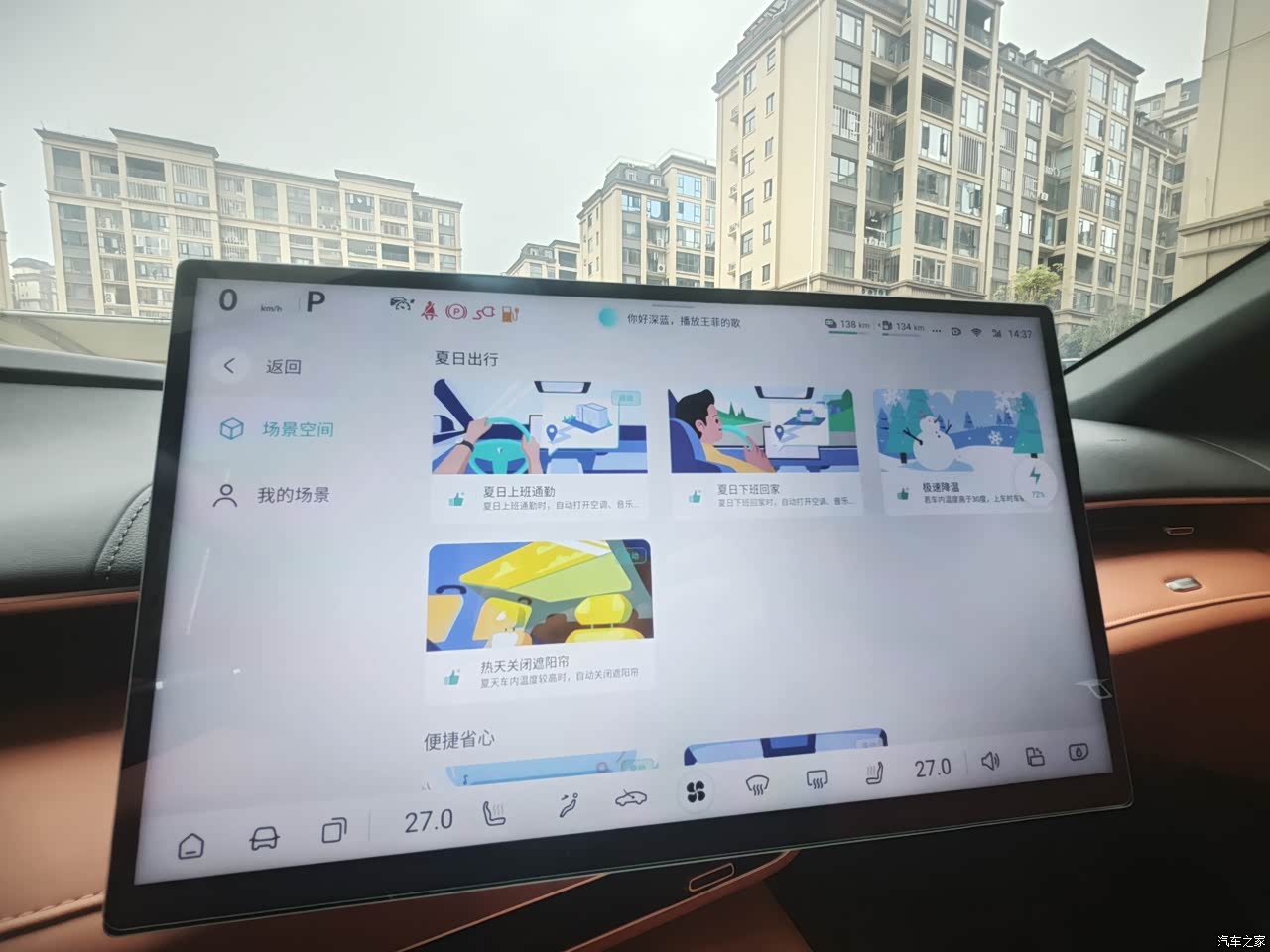 聊聊驾驶感受,市区起步轻快,红绿灯总能第一个冲出去;高速上开到120km/h依然很稳,方向盘转向力度可调,增程器启动时基本无感,急加速的时候会有非常轻微的声音,但是亏电的时候增程器会有声音,然后底盘我个人觉得是偏软的,有时候走国道路没那么好的时候开起来也还算比较舒适。
