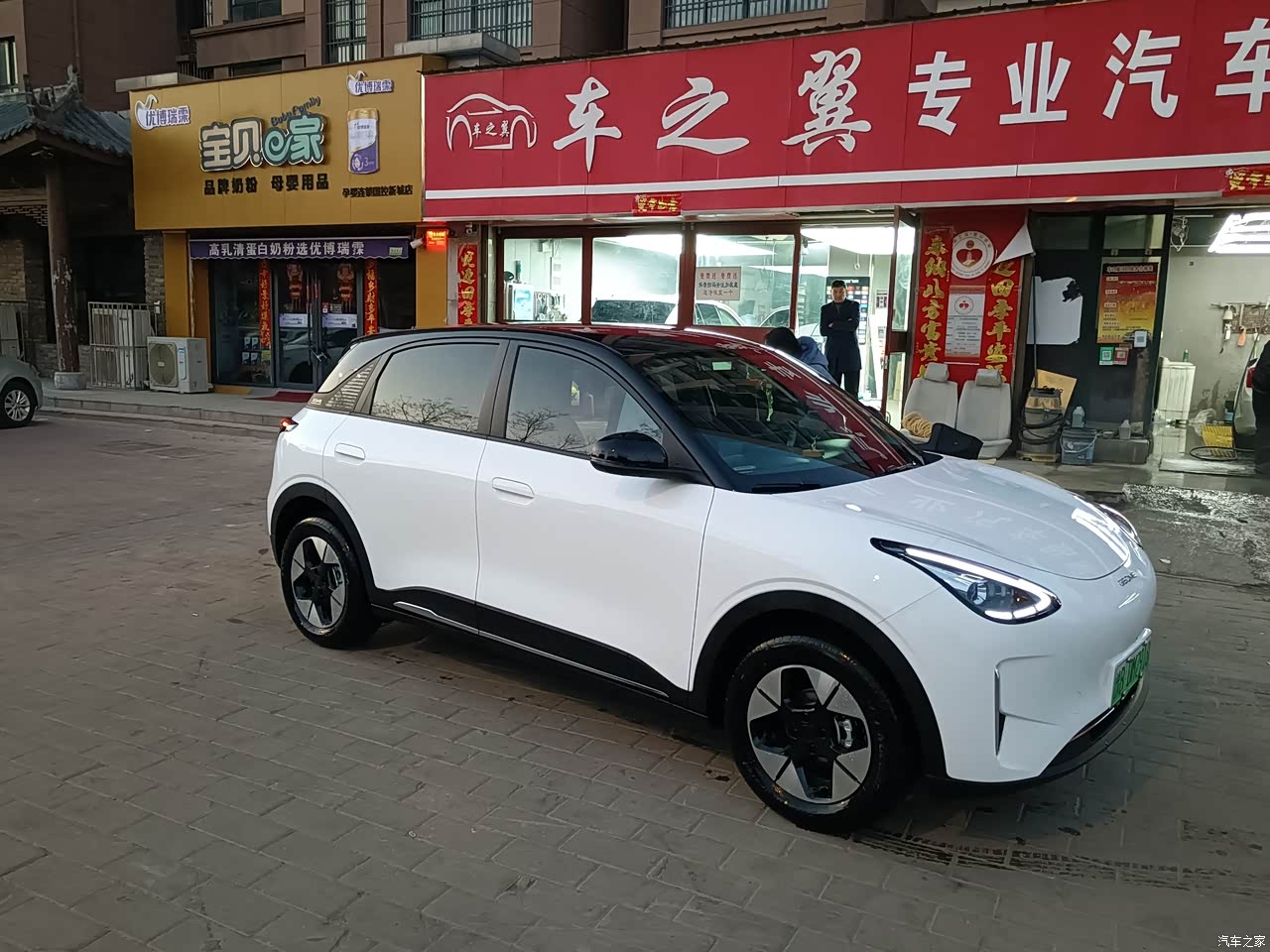 造型设计深深的吸引了我,自从第一眼看到后,其它纯电小车我一个也没相中!圆润的外形没有一条多余的线条,车灯造型前后呼应!只是这个版本的白色车身略显单薄,上牌的第二天就把悬浮顶贴上了,哇!立马上升了一个档次,秒变高配,至于需不需要备案,改天再说,自己先高兴高兴∵