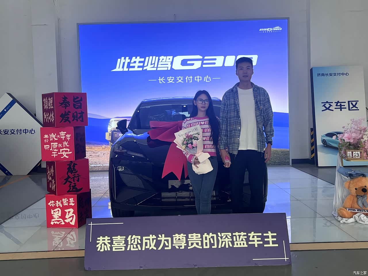 最满意的就是深蓝s07的外观了,很适合我们刚结婚的年轻人,车辆外观棱角分明,我选择的黑色外观,就是比较容易脏。