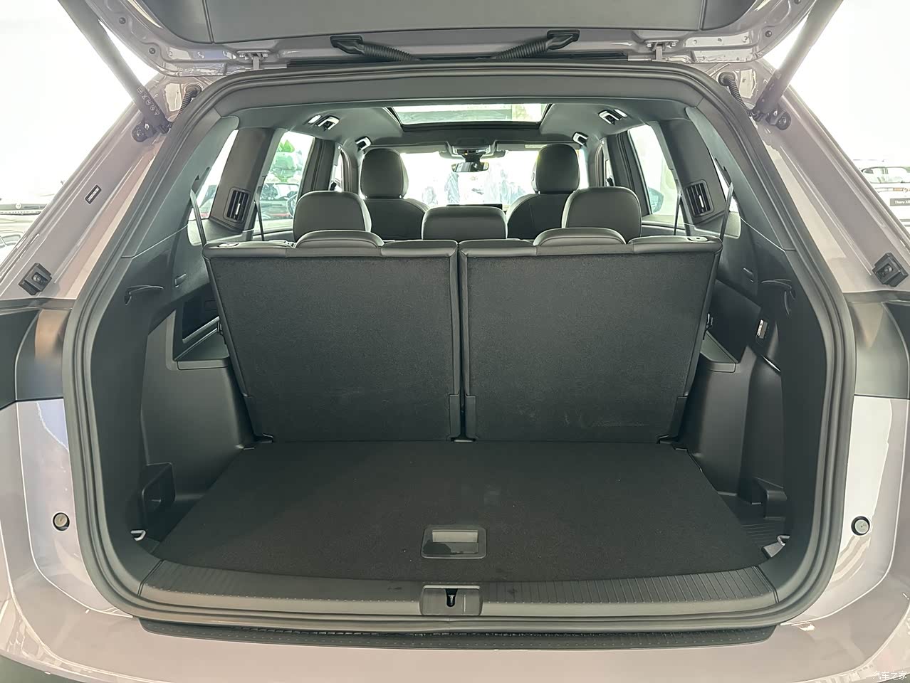 途昂Pro的空间依旧非常宽敞,座椅采用2+3+2的7座布局。空间表现和老款的区别不大,非常标准的真7座SUV,乘坐7个成年人一点问题都没有。后备厢空间也是一贯出色,储物空间相当宽敞,二三排座椅依旧可以完全放平,形成一个非常平整的大空间。喜欢露营或者自驾游的朋友,一定非常喜欢这个大空间,放上被子就是一张超舒适的移动大床。