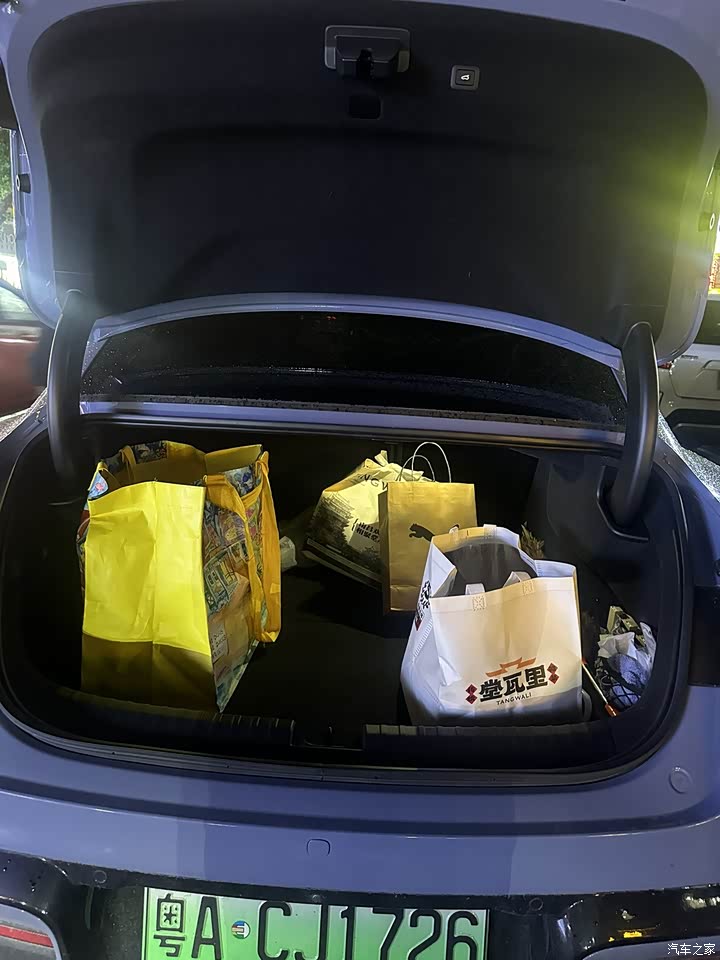 空间的话非常满意,我的后背箱已经塞了几个袋子了,为还有很多的位置。之前春节去旅游,塞了一家人的行李箱,居然能塞得下,后面买了手信礼物,后备箱放不下了,没想到前备箱也放得下,然后都塞进去了前备箱了,哈哈哈,女孩子就是爱买买买嘻嘻😁