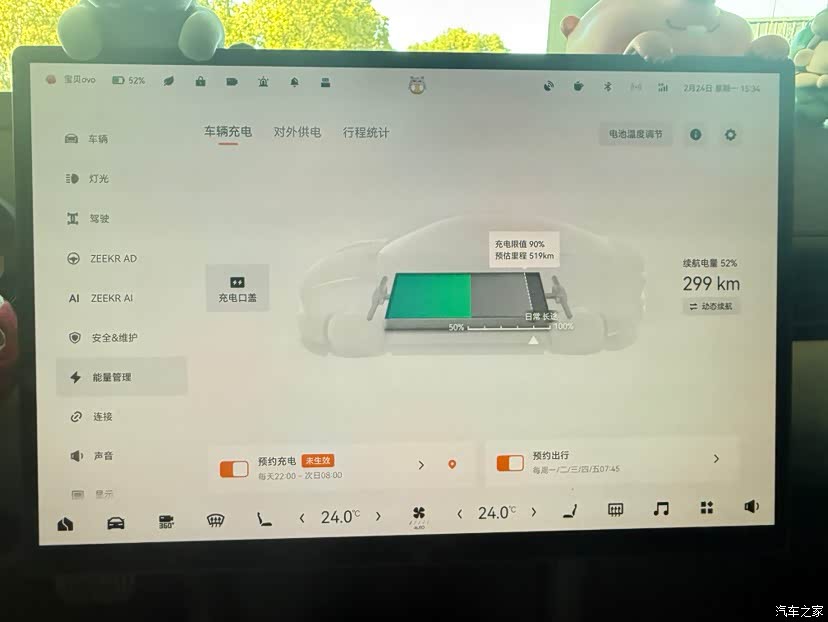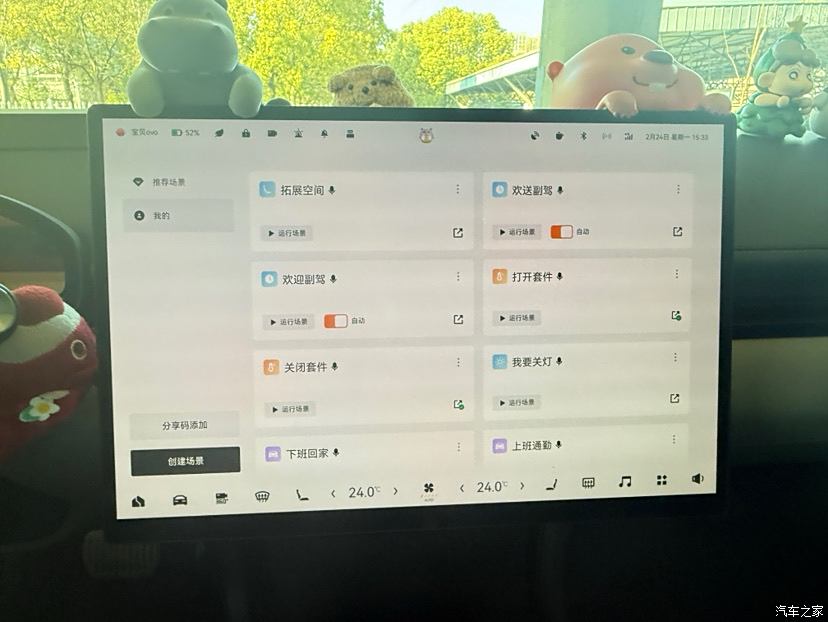 预约充电、预约出行 预约充电22:00-8:00,解决了我晚上还要下楼插充电桩的烦恼,通过预约充电直接解决这个问题。充电桩用的即插即冲,所以不带预约功能,极氪这个功能也让我在充电桩选购上省下了成本。 预约出行有多好用,用过的都说好,夏天出门车里已经很凉快的,冬天出门车里已经温暖了,和冬天上车冻死说拜拜(话说什么时候可以增加多个预约时间,下班也同样需要)。 灵动屏保 这个屏保支持自己DIY,可以自己选择组合,也可以通过Eva生成AI图片,拥有独一无二的壁纸,非常的好看。 场景工坊 我在场景工坊内设置了非常多的功能与条件,这每一个功能对我来说都非常有用,帮我省去很多麻烦事情,很多事通过Hi,Eva 就能解决,非常的棒。 这个功能真的是最好用的存在。