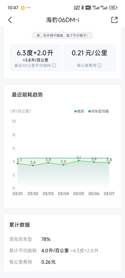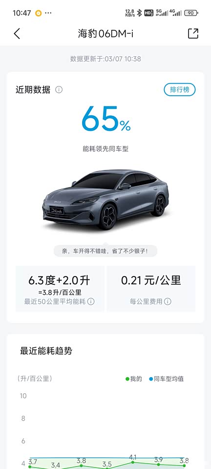 2025年2月28号,我终于迎来了我的新座驾——比亚迪海豹06 DM-i。这一周的驾驶经历,让我对这款中型轿车有了更深的了解和感受。以下是本人的一些用车心得,体验感受分享 海豹06 DM-i的外观设计确实令人眼前一亮。前脸采用封闭式进气格栅搭配锐利的LED睫毛灯,彰显出科技感与未来感。车身线条流畅,溜背式设计赋予了它独特的运动风格。我选择的是亚特兰蒂斯灰看起来就是蓝色的车身,配合黑色的坐垫是有高级感的。 内饰方面,海豹06 DM-i同样没有让我失望。中控台在10w价位的车里中规中矩。值得表扬的是本次全系配置大屏幕,用下来很方便舒服,提升了整体科技感。座椅的包裹性和支撑性都非常出色,长时间驾驶也不会感到疲劳。而且比亚迪有很多的内饰配套,可以根据自己的喜好设计不同的风格 在驾驶过程中,海豹06 DM-i的动力表现给我留下了深刻印象。它搭载了比亚迪自主研发的插电式混合动力系统,1.5L自然吸气发动机与电动机配合起来还是很不错的。没有想象的噪音,整体下来比较舒服。本人不方便充电,及时再亏电情况下,通勤的油耗也能控制在3个油左右。特别方便实惠。操控性能同样出色。转向精准,悬挂系统调校得还可以,同价位算是性价比比较高的感受,相对比较平稳,比同价位的要舒服不少。主要是车内空间比较大不管是出去玩还是上班,都能感受到他的大空间带来的便捷 海豹06 DM-i在智能科技配置方面也表现得相当出色。我选配的是9.98的最低配版本,是冲着天神之眼来的,刚刚开始的时候对这个没有太大的期望。以为会出问题。用了一周时间下来发现还是很好用的,特别是自动泊车,从买车到现在。几乎都是智家帮忙停的车。对新手特别的有好 能耗与续航: 在能耗方面,表现同样令人惊喜。我提车时一次性加满了油,并充满了电,目前300KM下来平均百公里3个油左右,还是特别的经济实惠的,也不用像纯电车一样去担心充电续航的问题。完全可以当成传统燃油车来开。80KM的纯电续航泡完差不多有70左右。长沙本周天气很冷基本都是上车空调必开。能有这个纯电表现已经是非常不错了。但是还是建议一周一次至少电池满充满放。这样能更好的维持电池的寿命 总结:综合表现出色,性价比无敌,值得推荐 总的来说,比亚迪海豹06 DM-i是一款高端智能、强劲动力、经济续航能力以及空间舒适度都非常出色的高性价比家用车。买之前一直在纠结和同价位的五菱星光,吉利银行L6,奇瑞风云A8,长按深蓝S03,都做了全面对比,试驾完后果断的选择了海豹,因为全方面都有自己的优势。在此强烈,同时也希望比亚迪能够做出体验更好性价比更高的车。