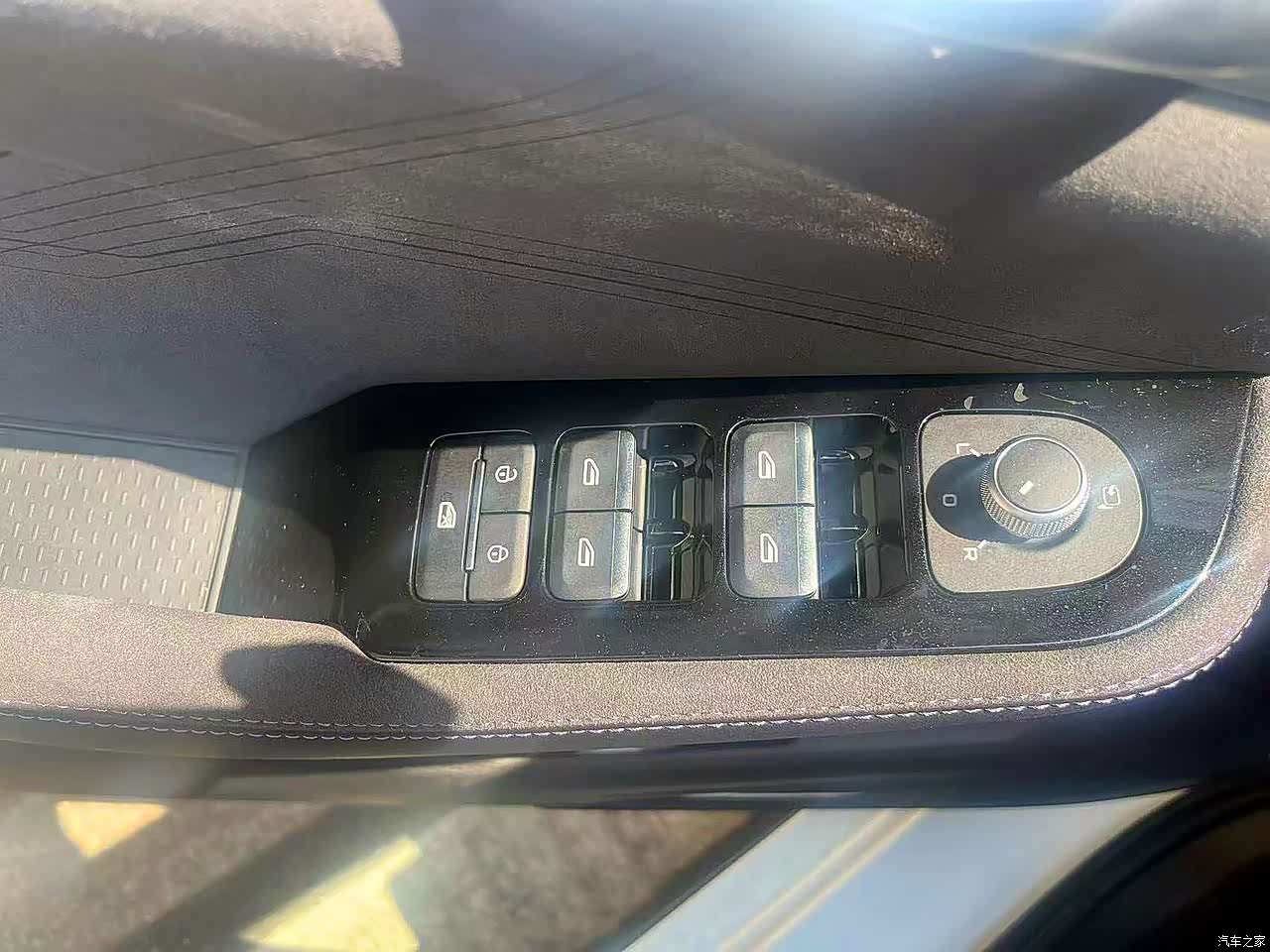 黑灰色的内饰风格,比较好打理的类型。座椅和门板上有条纹和刺绣装饰,长时间看着也不会太单调。