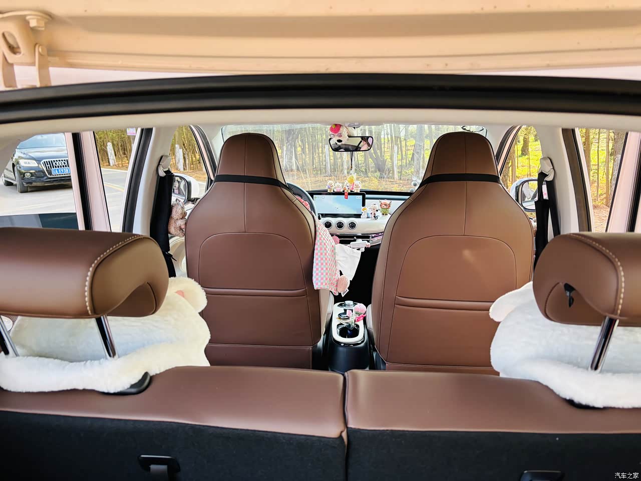 你看它粉色的车身,圆润的外观轮廓实在是又萌又Q 超级匹配呆萌的女孩子,尽管自己早过了这个年龄,但还是超级喜欢的,另外棕色加白色的皮质座椅确实耐脏又耐看,自动驻车的设置 真是方便极了,电动座椅调节方便很简单,特别它的深陷后备箱,实在是潜力无限,跑回农村老家运粮运菜全不在话下是完全不会辜负老父亲的深情厚意,家乡土特产实在不少装啊!说实话,看着别人开着车风不吹日不晒的,我是真的很羡慕,尤其是下班的时候下大雨刮大风,那个时候自己骑个两轮电动车……可想而知自己的那个心酸…唉,终于终于当我攒够钱决定买一辆日常短途代步纯电车时,我毅然决然的选择了五菱缤果这款小车车,虽然在我面前有着无数的选择,但主要考虑的还是预算和对微型电车内部空间的担忧,还有一点就是毕竟我还是一个灵活的小胖子,车子太小坐着肯定难受。经过一段时间的对比,在众多新能源汽车品牌旗下的产品中,五菱缤果2024款凭借其出色的性价比和大空间吸引了我的注意。尤其是它那圆润且带有复古的外观,一下就戳在了我的心窝里,于是我就立马去了我们当地的4s店里,果然,一进去就被五菱缤果迷的挪不开眼,当下就让销售顾问给我安排了试驾,该说不说这五菱缤果操控性是真真好,方向盘很轻盈,旋钮切换档位。只要控制好油门和刹车,保持安全距离和车速,开车就没什么问题,当时我还是个新手,真的是应了傻瓜式操作,试驾了一圈下来感觉非常好,当下就签了单,从此以后,咱也是有车的人了。