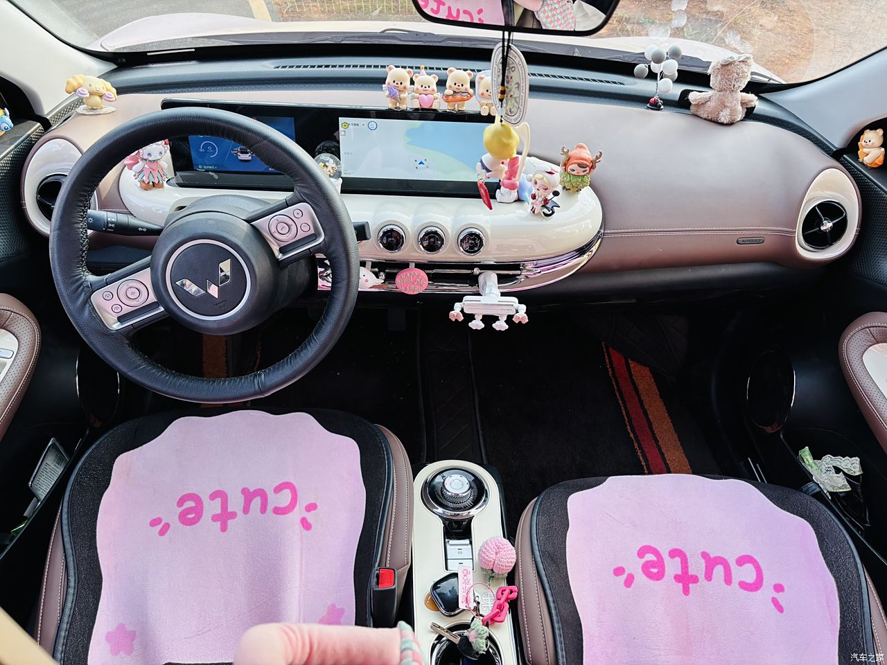 虽然我们果子的内饰比较简约,但我以为作为7万多的代步神器已经足够用了,它没有那么繁琐该有的都有,满足基本的需要,水杯、雨伞、小物件盛放处都有地方安置,甚至就连汤汤水水的东西都有它专属的地方来盛放,车门按钮也算齐备,许多东西不用操心,自动完成,很贴心也很人性化哦!内饰搭配棕白色镶嵌很是大气,才把车提回来我就迫不及待的把之前的那些盲盒全给拆了,甚至还买了一些垫子、要靠、头枕来装饰我的爱车,主打一个花里胡哨,哈哈!