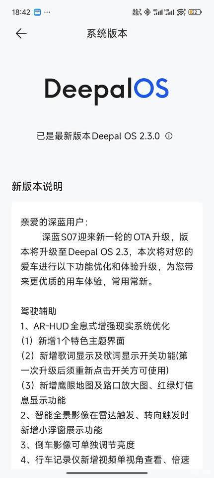要说后悔?唯一后悔的是没选智驾,深蓝更新换代的太快了,一下普通版也更新了智驾早知道就在过一段时间在买了。 还要车机的更新太慢了,还有好多设置是不符合正常逻辑的,比打转向灯显示相对应的摄像头页面,但是深蓝设置的是一定要低于30㎞,以及网易云播放时看不见时间等,车机还是有很多需要优化的地方的。