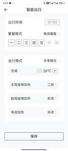 另外更新后还能远程指定出行计划,自己自定义哪一天几点提前开启空调或者别的,在这个过程中车辆是锁定的,但是内部设置会按照你预设好的提前启动,尤其对于北方冬天出门的小伙伴实用性更强。
