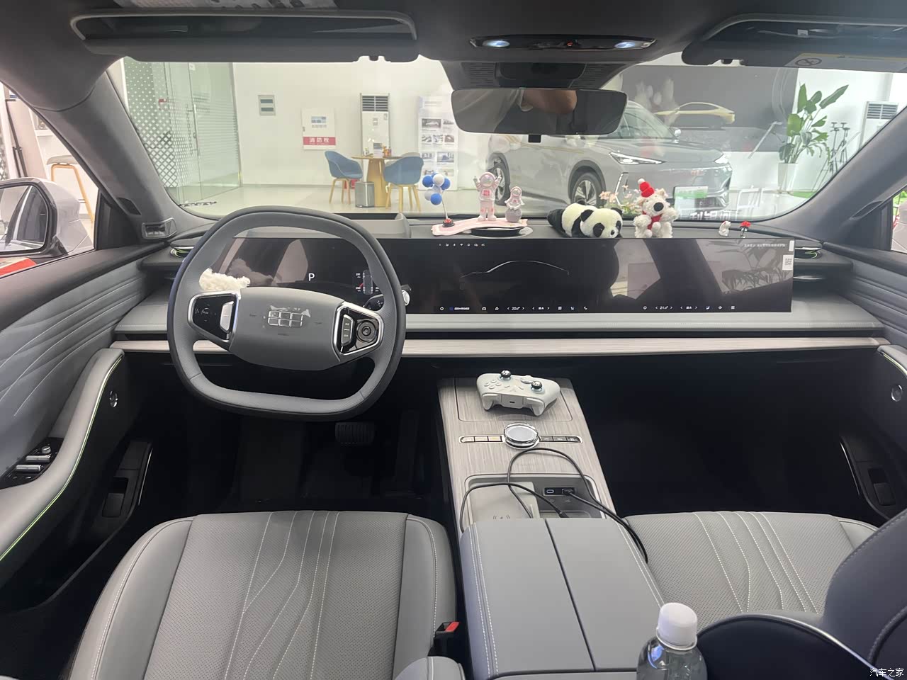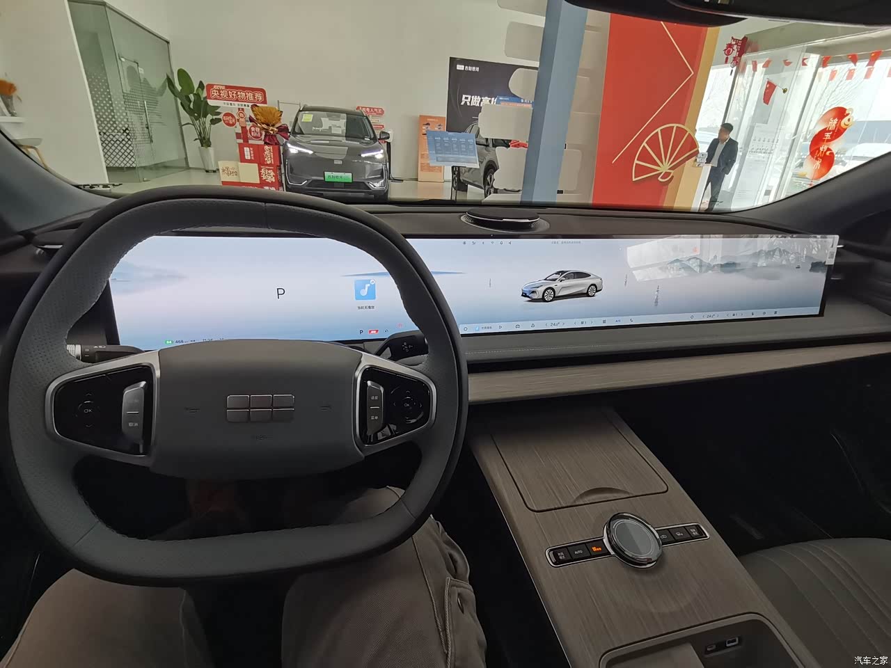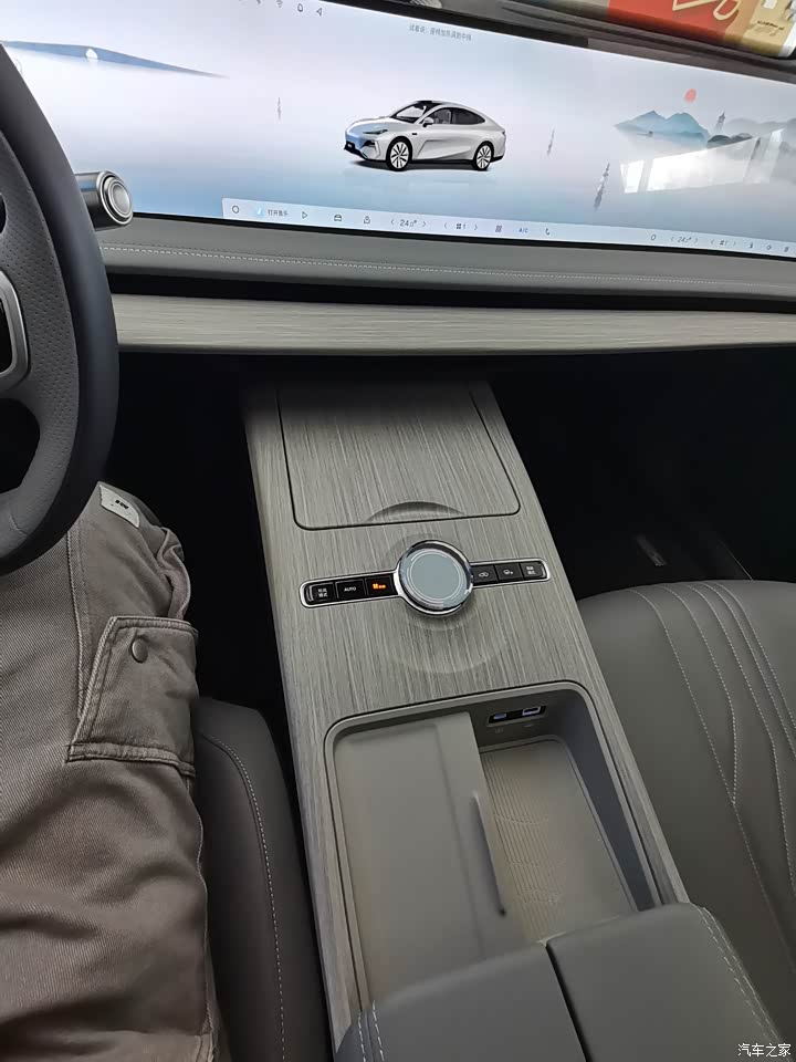 打开车门映入眼帘的是搭载高通骁龙8295芯片的大联屏,45英寸8k超大屏,集驾驶、娱乐等多种功能于一体。还没有哪家车企能做到这个程度,完美的解决了消费者对于车载交互无界的需求,从设计上来说很美观,很震撼。扶手箱位置正好有个游戏手柄,开了把赛车游戏感受了一下,操作起来很丝滑,画面很流畅,没有卡顿的感觉,对于游戏爱好者来说,是个不错的选择。此外,水晶旋钮,还有三潭印月悬浮音响设计(在此放一张雨中漫步西湖三潭印月的美照),科技感十足,功能很强大。完美的体验了东方元素与现代科技相融合。