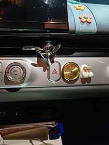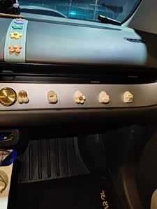 车内的摆件儿有很多,有的人喜欢把车内弄得满满的。有的就喜欢简简单单的,不愿意在车内摆放东西太多。不过我觉得车内太单一就要简单的装饰一下,氛围蹭一下子就上来了。 车内仪表台中间摆着两个打坐的小狐狸,看着非常的安逸。出风口有个小香薰,开空调的时候可以出现淡淡的香味。也属于是一个小摆件儿,看起来挺像直升机的小飞翅呢。第二个就是仪表台中间的花花装饰,原车的仪表带中间是个浅蓝色的,上面贴几个花花,也非常的漂亮。 副驾驶安装了几个小挂钩,这里可以挂上数据线,或者垃圾袋都是非常方便使用的。 车内摆件不必要弄很多,摆张自己喜欢的摆件,车内就不单一。毕竟开车是属于自己的空间吧,自己想怎么装饰一下都是可以的,前提下,不要影响我们行车安全哦。 这就是我的爱车内饰小装饰,看起来是不是特别的温馨呀?非常喜欢在我的爱车糯玉米里面听歌,在车里休息一会儿也是感觉非常愉悦的。