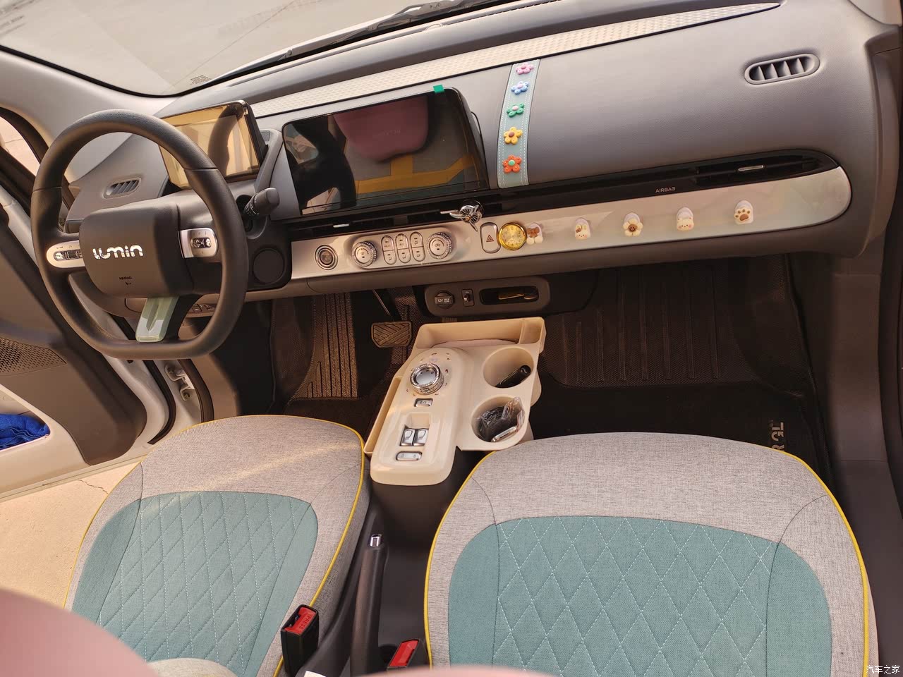 终于迎来了给我的长安糯玉米内饰大改造的日子!我一直觉得它的内饰要是能更温馨舒适就完美了,今天就动手实现这个想法。 我最先考虑的是座椅部分。原车的织物座椅虽然看着还行,但容易沾灰还不好打理,果断给它安排上一套超纤皮座椅套。我挑的是米白色,和车身的浅蓝色搭配起来,清爽又高级。安装的时候费了点劲,不过好在贴合度超棒,头枕部分的设计也很贴心,能给脖子更好的支撑,现在开车久了也不容易累。 方向盘原来的手感有点普通,我选了一个带打孔设计的皮质方向盘套。自己动手缝上去,过程还挺解压。缝好后,握感瞬间提升,打孔设计也能让手心不那么容易出汗,操控起来更得心应手。 为了让车内氛围感拉满,我安装了一套多色氛围灯。可以用手机APP控制颜色和亮度,晚上开车的时候,调成柔和的暖黄色,整个车厢都变得温馨浪漫;想要来点动感,就换成酷炫的蓝色或者紫色,感觉像在开一辆未来座驾。 车内的储物空间也被我好好规划了一番。中央扶手箱的位置,我装上了一个带分层的收纳盒,行驶证、驾驶证、停车卡这些常用小物件都能分类放好,再也不用在车里到处乱找了。后排座椅后面,我还粘了一个挂式收纳袋,放些纸巾、小零食之类的,很方便。 最后,在中控台上摆上一个小巧的香薰摆件,选的是淡雅的薰衣草香味,一打开车门,就能闻到这股清新舒缓的香气,一天的疲惫都能被驱散。经过这一番美容,我的长安糯玉米内饰焕然一新,每次坐进去都幸福感满满 。
