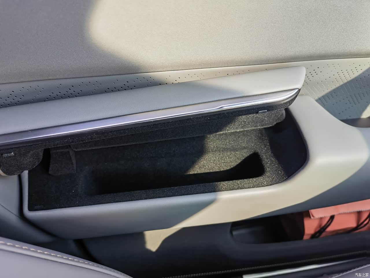 主副驾门把手上的手套箱,可以放一些小的易丢物品,比如卡片,单把钥匙之类的,好评。