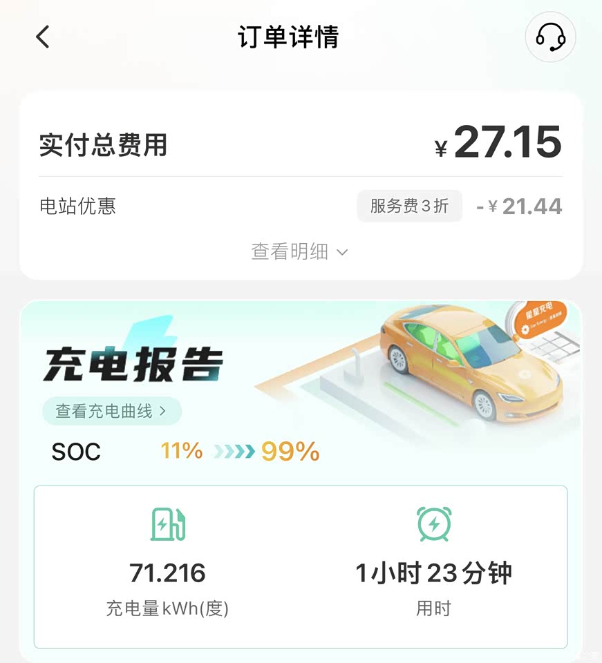 第一次高速全程180公里,车上3人,后备箱满载,出发时动态续航显示380公里左右,全程空调24度,大部分时间副驾座椅加热开启,ACC定速120,到达后竟然只剩50公里续航,算下来差不多打5折。后面几次还是同样的路程,不过全车空载只有我一个人,全程定速110/115,空调和座椅加热全部关闭,这样下来好了很多,差不多打7/8折吧。总结经验应该就是空调和座椅加热比较费电吧,不过也还好,个人没有太多高速需求,大部分时候还是城市日常通勤,每天通勤来回40公里,基本10天左右充一次电,所以也还能接受吧。 充电速率如下: 慢充(7kw) :约10小时左右(10%~100%) 快充(星星/电网) : 约80分钟(10%~100%)