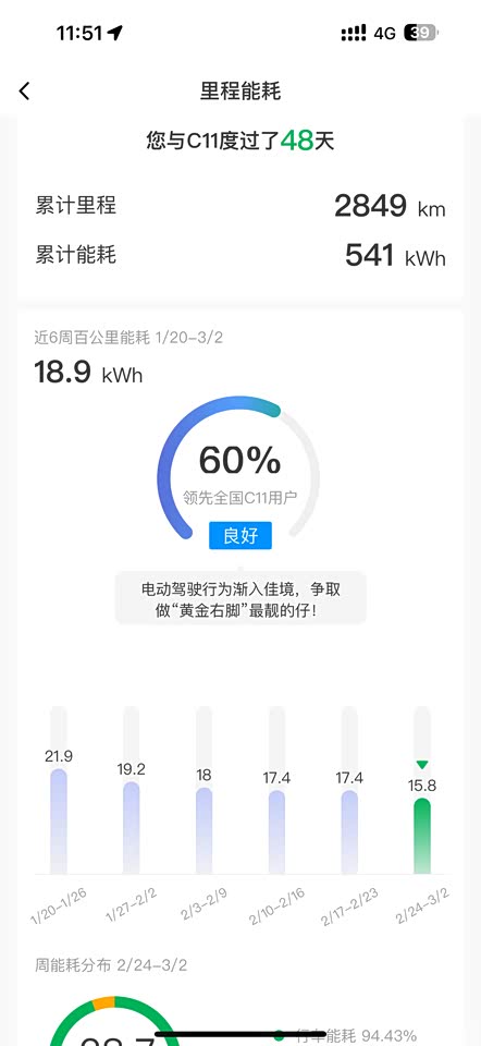 个人觉得续航能力相对较弱,不过也算是纯电车型的通病吧,坐标西安,从提车到现在平均能耗18.9,日常城市路段还能好一些,满电情况下极限能跑400公里多一点,跑高速就有些不尽人意了,不知道是不是驾驶习惯的问题,或者是空调和座椅加热真的很费电,高速路段续航打折比较严重,还好个人的高速需求比较少,不过随着天气变暖,希望小零的续航能给我带来惊喜吧!