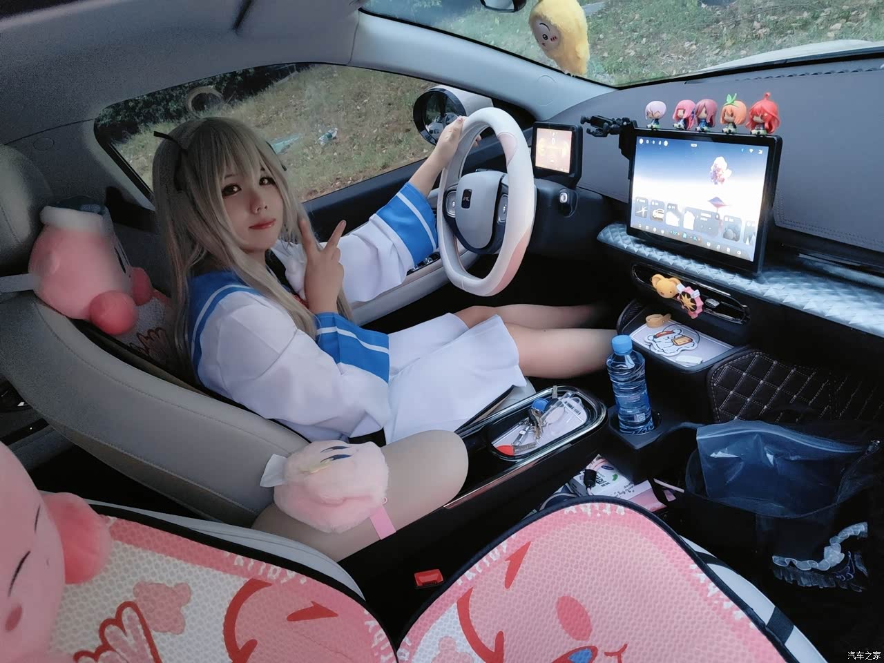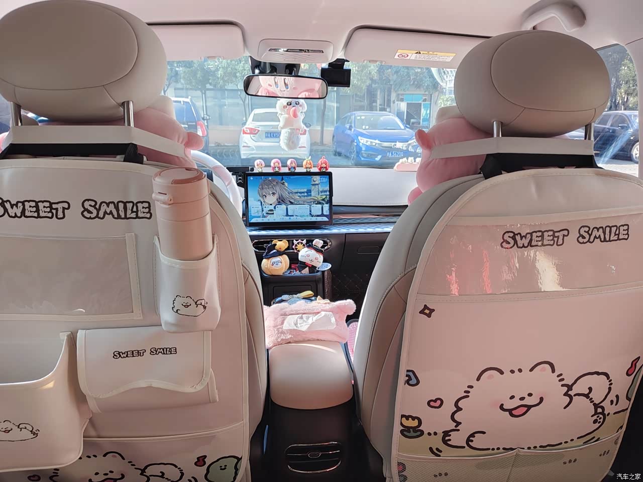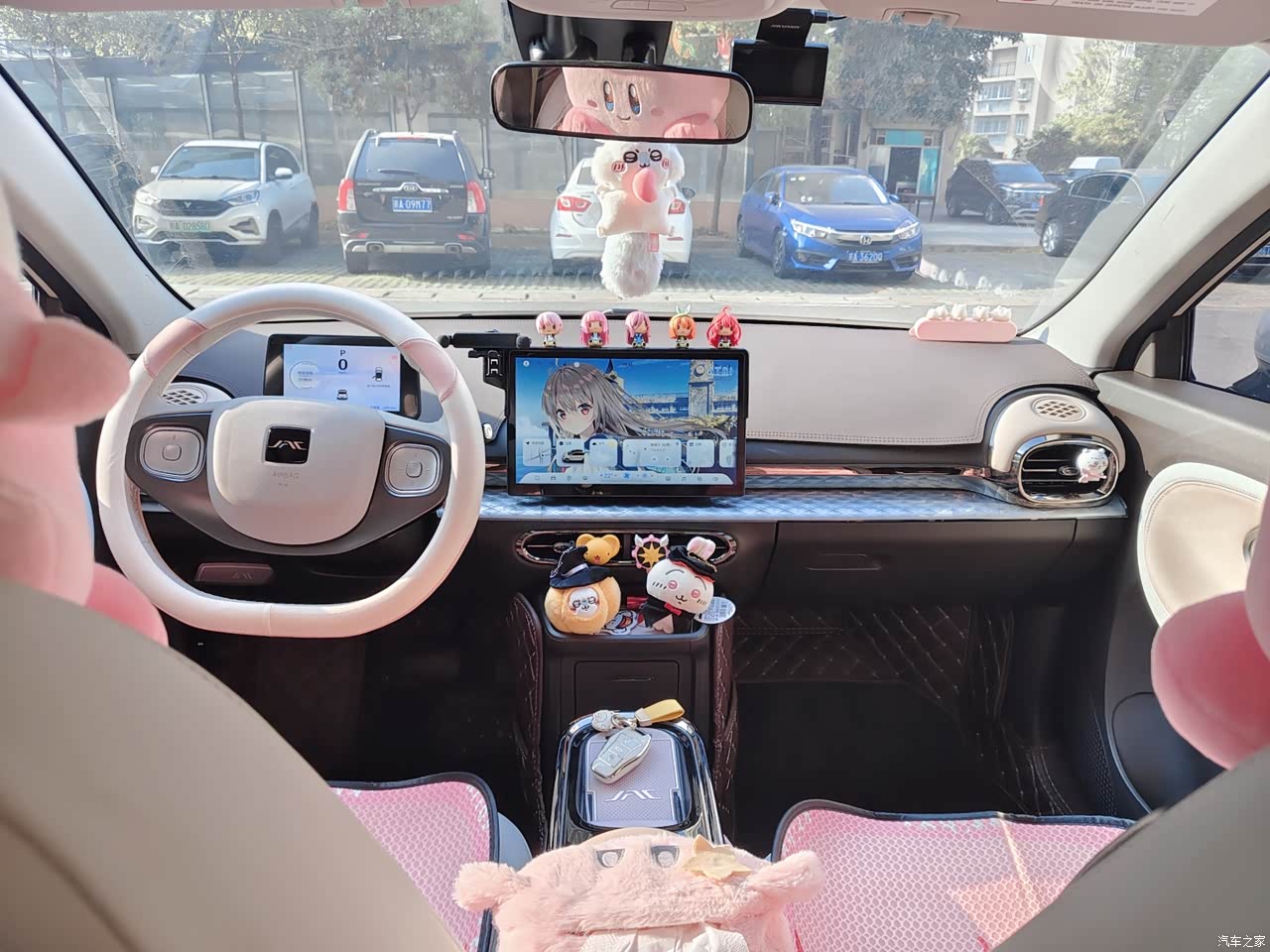 内饰:除了那个水晶台有点不喜欢,其他的都很满意,皮革味道也不重,反正女孩子就喜欢折腾内饰,我全部装饰下来也不到900。