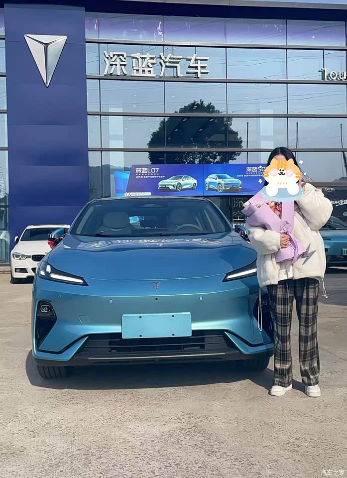 深蓝l07max24年530款 蓝外白内 本人本来喜欢suv的圆屁股,直到看见了深蓝l07由于不想花钱加油外加上班地方近就选择了纯电版本,真的一眼心动白内呀,太好看了,也很喜欢l07的大溜背,选择l07没选择03也是因为电动尾翼,谁不会为尾翼心动呢,我是12月14号锁单的,付完定金就去了南京,就算知道在南京也提不了车但是还是每天在等待匹配发晕,我也是幸运的,购买是时候l07生产线跟上了,所以我还没回到无锡车子就已经在无锡了,激动的我提前一天回家验车了,12月31号验车,车子给我洗的干干净净的给我看,可惜了看完不能提走,回家就去看了提车日子3号和6号都是非常好的提车日子,可惜3号太赶了我选择了6号提车,多等了几天我的心情真的,谈订单的时候一直觉得我的销售还不错就磨了一点价格,但是!他送了我小熊盲盒真的好好看,因为12月权益和一月份不同,我一月初也选择了无感换单,我的开票价14.4W我把加装拉满了,深蓝的性价比真的!现在也开两月啦电耗平均一直13.8还是蛮不错的,有一辆自己的小车车真的很开心因为提车是冬天,也会开座椅加热空调之类,算算续航也能到350km,56度电池冬天南方这个续航真的很不错啦,还是很满意滴15W左右有这种品质的车子~