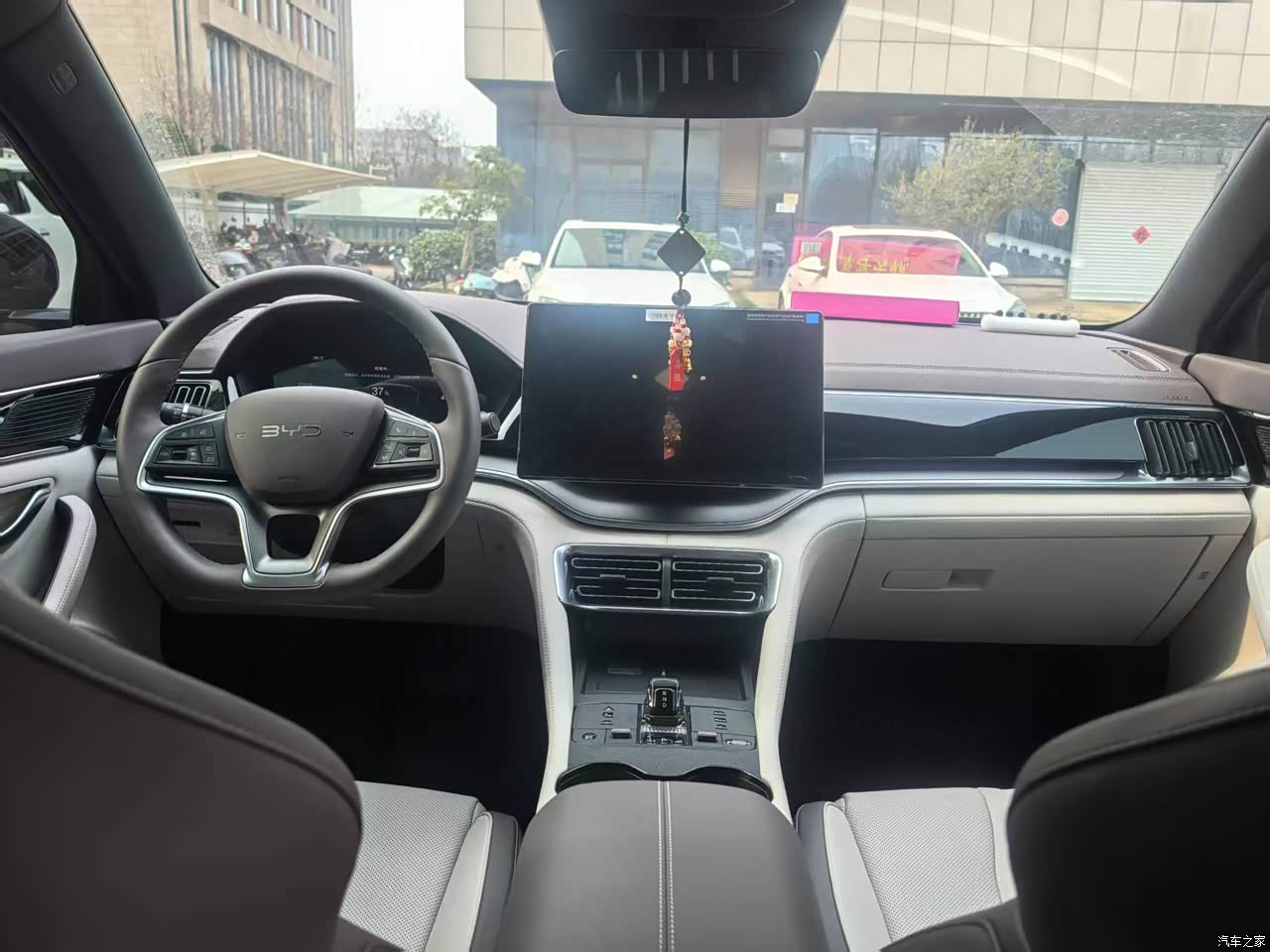 宋PLUS的内饰布局简洁大方,皮质细腻好打理。中控台上的大屏尺寸够大,堪比家用pad,清晰操作起来很流畅。座椅坐上去挺舒服,软硬适中包裹性和支撑性都不错。车内细节设计储物格的位置和大小都挺合理,方便放些小物件。