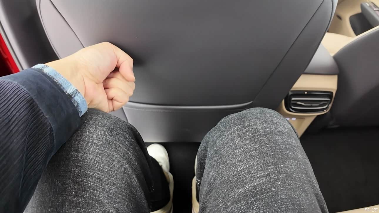 天工 05 的内部空间很大,保持了红旗车的一贯风格,我的身高一米八,体重九十公斤,无论是驾驶室还是后排座位,坐进去都不会觉得压抑,在前排座位处于中间位置的情况下,我坐在后排,膝盖距离前座还有一拳距离。