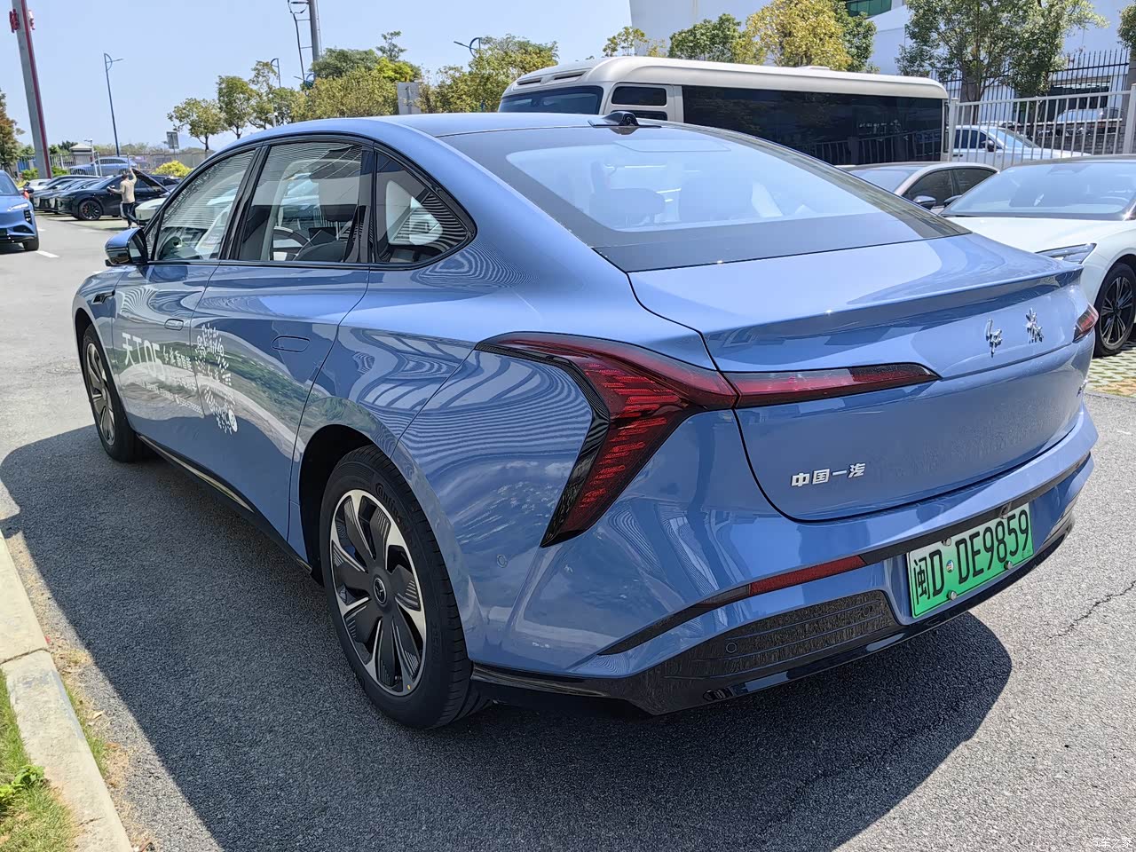 天工 05 的 外观比较含蓄,中规中矩,没有红旗油车的霸气,不过车尾的毛体“红旗”两个字保留了下来,这可是红旗车的灵魂。