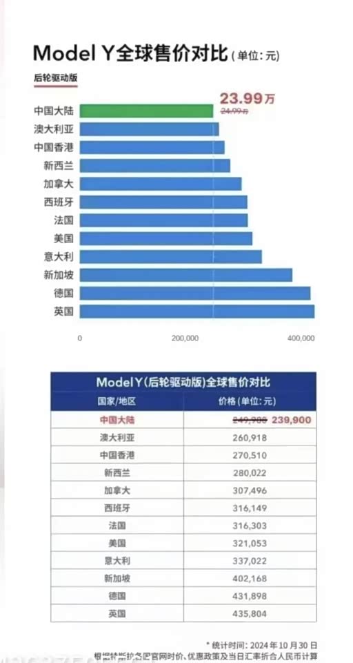 有人批评特斯拉的内饰简约如同“毛坯房”,认为其售价与性价比不成正比。然而,特斯拉的价值实则深藏于不易察觉之处:其三电技术的精进、悬挂系统的精密、底盘调校的匠心独运,以及自动驾驶技术的领先和电池管理系统的创新。若将这些尖端配置置于BBA等豪华品牌之下,售价突破40万元亦不足为奇。因此,我坚信特斯拉的性价比实则较高。值得一提的是,中国市场的售价为全球最低的市场之一,也体现出了性价比。