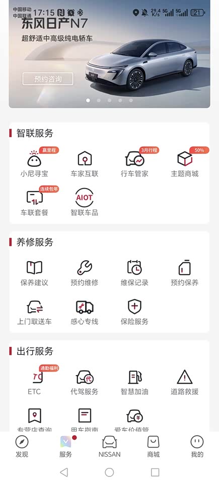 悦享版天籁还支持APP远程遥控控制,在手机下载日产智联APP,可以远程启动车内空调,设置温度和时间,提前升温或者降温,这个功能非常实用,可以使车内环境变得舒适,也节省了不少的时间!可以解锁与锁车!打开后备箱,长按解锁键或者锁车键5秒钟,可以同时降落或者上升四个窗户!而且还可以查看车辆状态,比如,车门是否锁上,玻璃是否关上,还带定位功能,在地下停车场可以随时找到车辆!,还有重要的养修服务的功能!可以查看保养建议,预约保养,预约维修,与保养记录等等,可以提前预约好保养时间,免去了排队等候的麻烦!