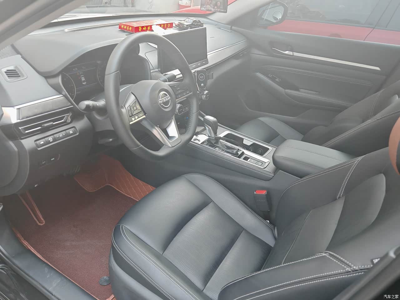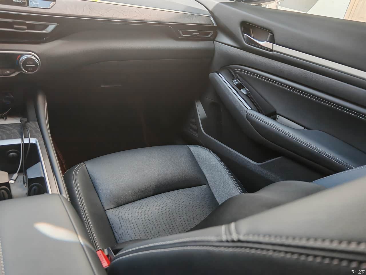 纯黑色的内饰,搭配了仿木纹的饰板!使车内提升几分档次感 ,座椅采用优质的真皮材质!用手摸上去柔软而细腻!厚度和柔软度也不错,具有良好的支撑性和舒适性,仪表台与车门护板采用软质的包裹 用手摸上去软软的 手感不错!天籁的方向材质采用真皮,开车时双 手握在上面,不仅手感不错,而且看着更显档次!能够很大的提升驾驶乐趣!