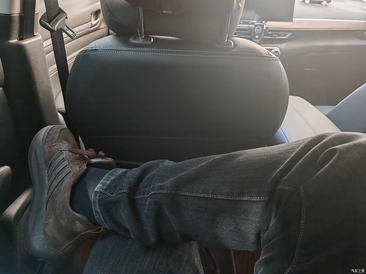 长为4906mm*宽为1850mm*高为1447 mm 轴距2825mm, 这样的尺寸对于我们一家五口使用绰绰有余了!后排就算坐满三个人,也不会觉得拥挤。而且腿部空间足够充足,双腿收放自如,我这170的身高在后排可以翘起二郎腿,虽然后排车顶是溜背式设计,头部空间也不会很局促,做在后排也不会觉得压抑,在加上分段式的全景天窗,使车内整个空间宽敞而舒适!