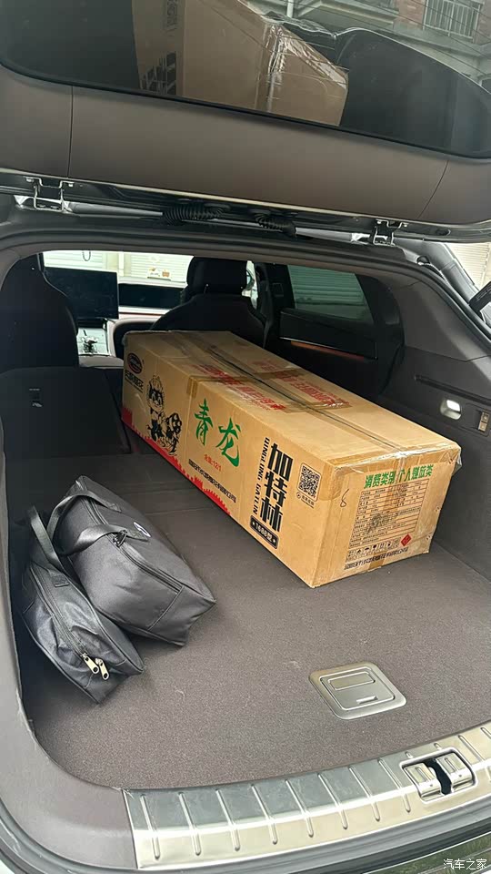 空间:家庭出行与性能追求的妥协 3.12米轴距带来奢侈的后排空间,1米8的朋友能轻松翘二郎腿。但为了造型牺牲了后备箱高度,这点不如传统SUV实用,不过放一些长的物品倒是轻轻松松。后排冰箱本来是个巨大的灾难,还好改成了选装否则没法买。 没有后排冰箱之后后备箱的容积马马虎虎,但由于双电机以及大角度的后轮转向还是侵占了后备箱的宽度,所幸没了后排冰箱放一两辆自行车倒是问题不大也满足了我的需求。