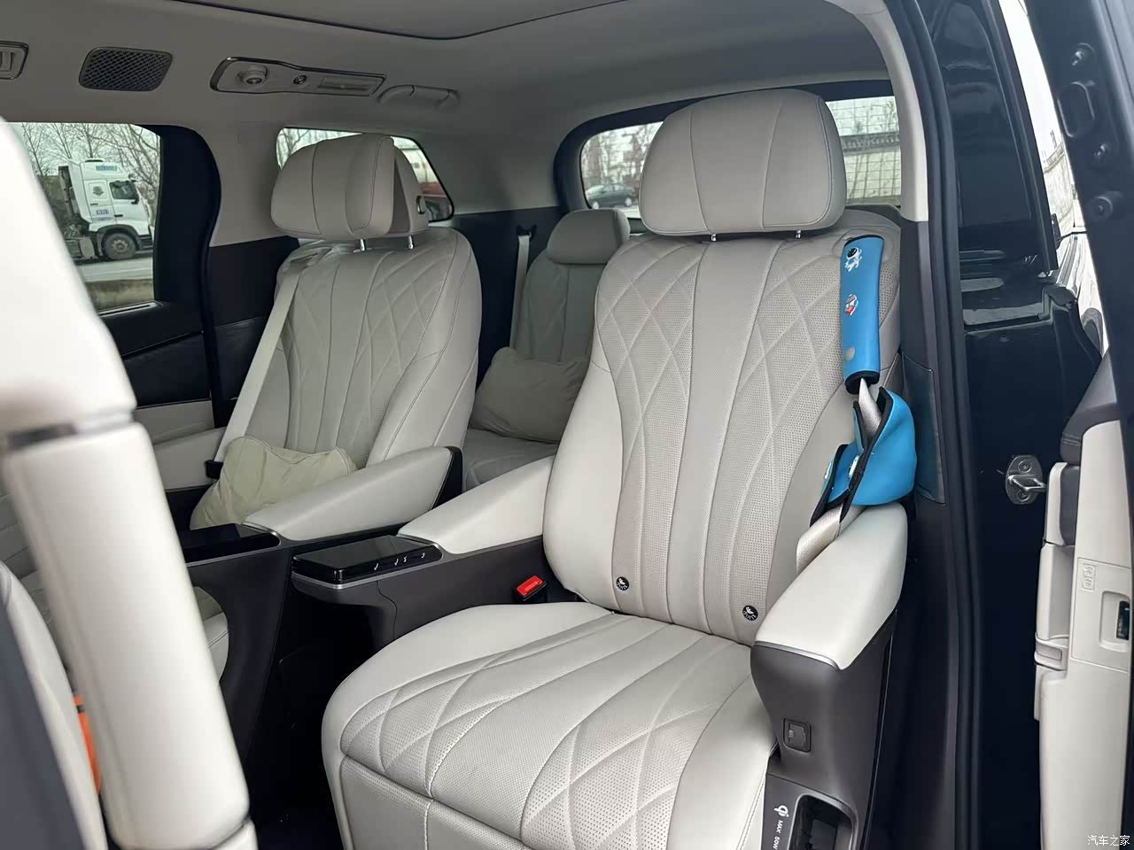 整体空间是2+2+3的车内布局,轴距达到了3米1,无论是坐在前排还是二排还是第三排,都不会觉得拥挤,二排的air spa双零重力座椅是很大的亮点,不仅可以支持16点式按摩,,座椅通风加热,还能一键开启零重力座椅,座椅布局也很灵活,可以一键切换四人舒享,七人舒享,后备箱延展等多种模式,不管是商务接待还是家庭出游,我觉得都能轻松应对。二排的座椅也是有实体按键,可以快速的调节座椅。