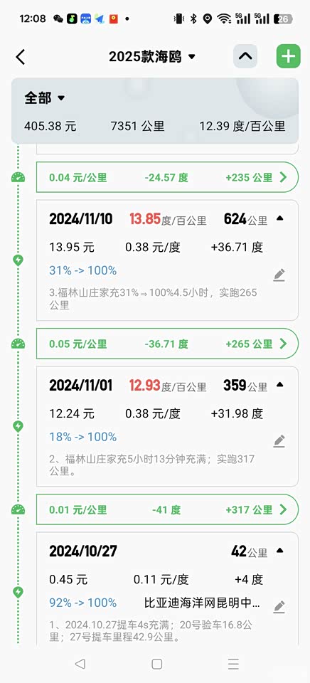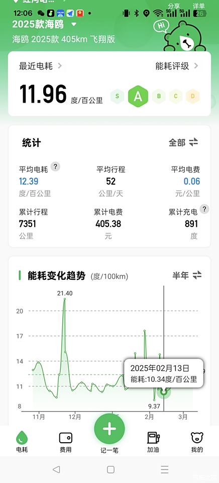 2024年7月份,🚗置换补贴政策出来,加上家里可以安装充电桩的条件,有了置换一辆电车的想法。 期间考虑过海狮07EV,宋L.DMI,极狐阿尔法T5【2024年10月谈成优惠3.7W,已经APP下定,在犹豫期退的,爱人接受不了杭州扣标事件】,考虑到混动需要频繁充电,两套系统的更易出问题,需要保养两套系统pass掉宋L.DMI;电车日历寿命还不确定等原因,主要城市通行,代步,加之海狮07EV没有优惠,最终决定买台小海鸥尝尝鲜。 ★★★小海鸥最满意的地方: ①♦省钱♦,不考虑电池更换问题,一个字“省”:如果家充,考虑到家充阶梯电价折中算0.43一度,城里代步通行费4分一公里,比弯梁摩托还要省!外面快充桩谷电充电也不到5角一度,非常奈斯!春节期间在高速上充电1.3元一度,每公里也就2角左右。 ②截止今天,行驶7500公里左右,电费支出405元左右,油车就够加一箱油。 ③小巧玲珑,城里穿梭如行云流水,停靠方便,2025年10月时405飞翔版省城优惠0.7W,云南省补领了1.8W,在当时很有性价比。