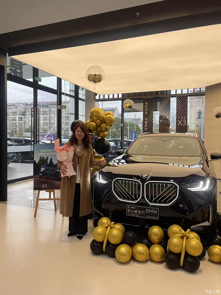 2025-3-16日,终于提到了梦寐以求的第一台BMW,我对这个车的着迷之处,第一是因为我喜欢这个logo,第二是因为太喜欢宝马的操纵感觉了,方向盘的转动特别的轻巧,不费吹灰之力就能转动,而选择这个车型也是因为这个车大小刚好特别适合我们三口之家,也适合女生的大小,而选择2025款是因为2025款的内部空间真的比老款有加大,还有就是坐垫真的对我这种有坐骨神经痛的久坐人群是特别贴心的设计,另外里面的改变的液晶显示屏也非常美观大方,而且可根据心情选择氛围感,那么里面的施洛华奇水晶镶边的装饰真的非常漂亮上档次;空间方面,后排的空间比旧款要大很多,没有那么压抑,后备箱的空间也比较大,很合适长途旅行放较多东西,唯一遗憾的是,希望这个车型内饰的颜色搭配选择可以再多一些. 提车的当天,4S店也准备了非常有氛围感的交车仪式,总之,我觉得对X5的车型会觉得有点大,那么2025X3是一个最棒的选择!!