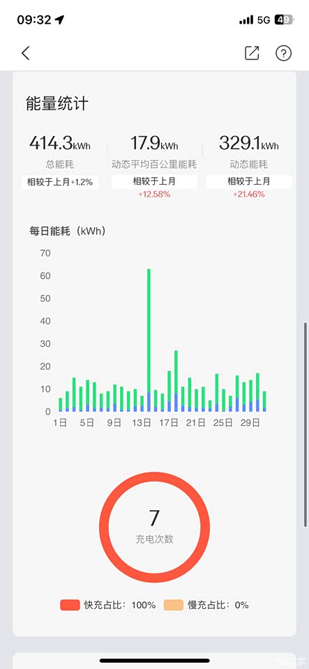 续航也算是最不满意的,满电标注续航732km,冬天的电耗基本在21-24,暖和一点的春秋在16-18,夏天差不多也在17-19左右。春秋冬基本空调都在22度、风速1档。盛夏的风速一般维持在3-4档、20度。 能耗放了12-2月、7-8月的能耗图。
