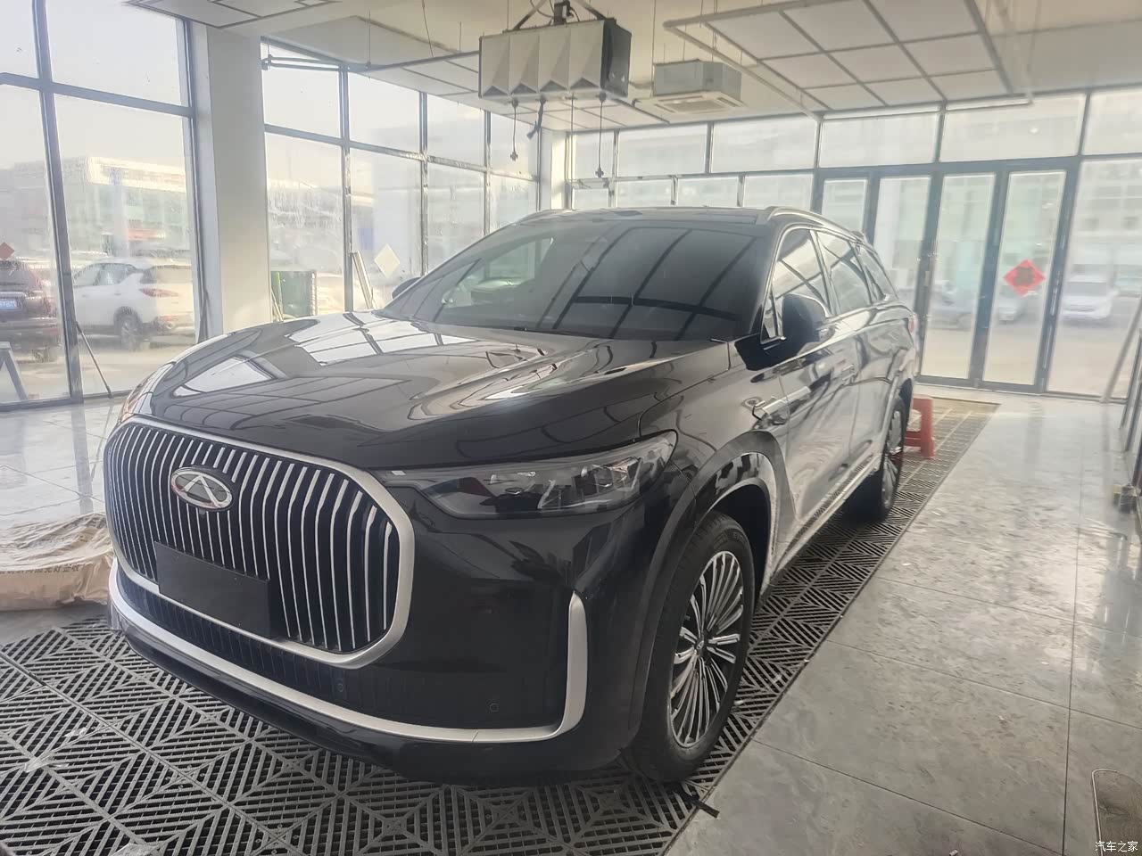 瑞虎9的车辆外观设计独具匠心,融合了现代与经典的元素。车身线条流畅,勾勒出动感而优雅的车身轮廓。前脸部分,宽大的进气格栅与犀利的LED大灯组巧妙结合,赋予车辆强烈的视觉冲击力。车身侧面,高挑的腰线从前翼子板延伸至尾灯,营造出力量感与运动感。车尾部分,层次分明的设计与前脸相呼应,展现出整体设计的协调性。此外,黑色的瑞虎9还展现出一种沉稳而神秘的气质。车身的黑色涂装在阳光下泛着深邃的光泽,与车辆本身的动感设计相得益彰,使得整车看起来更加高级且具有质感。黑色的车漆不仅增强了车辆的视觉冲击力,还赋予了它一种独特的身份标识,让人一眼就能认出这是瑞虎9的特别版本。在夜晚或光线较暗的环境下,黑色的瑞虎9更显低调而奢华,成为道路上的一道亮丽风景线。