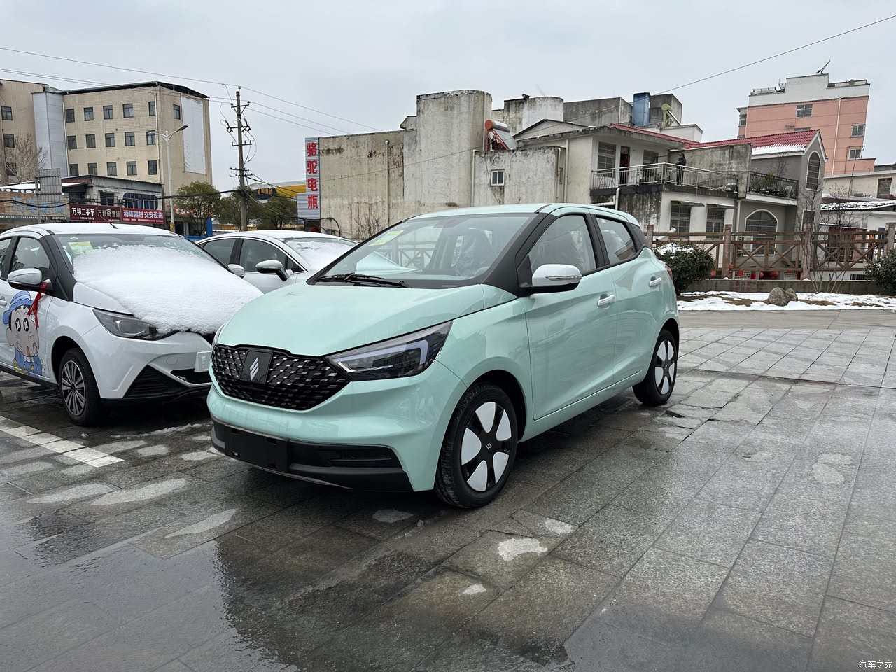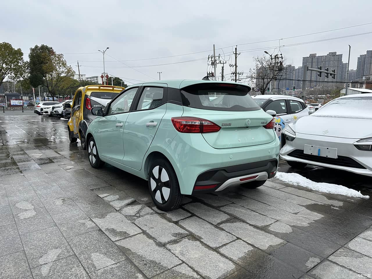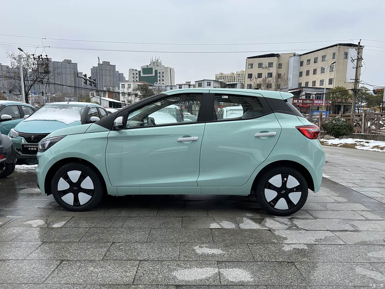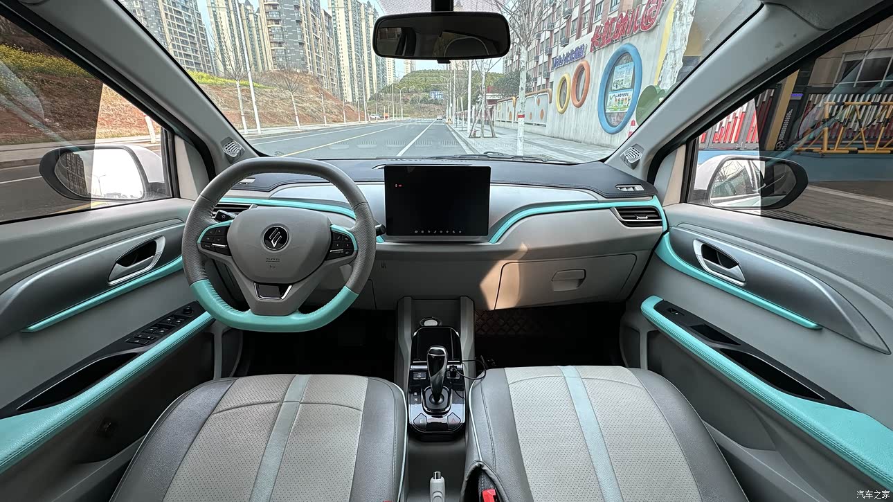 第一次看到实车时,双色车身和悬浮车顶确实比五菱宏光MINIEV等那些2门车,多了几分设计感(尤其是天水碧配色),颜值高。