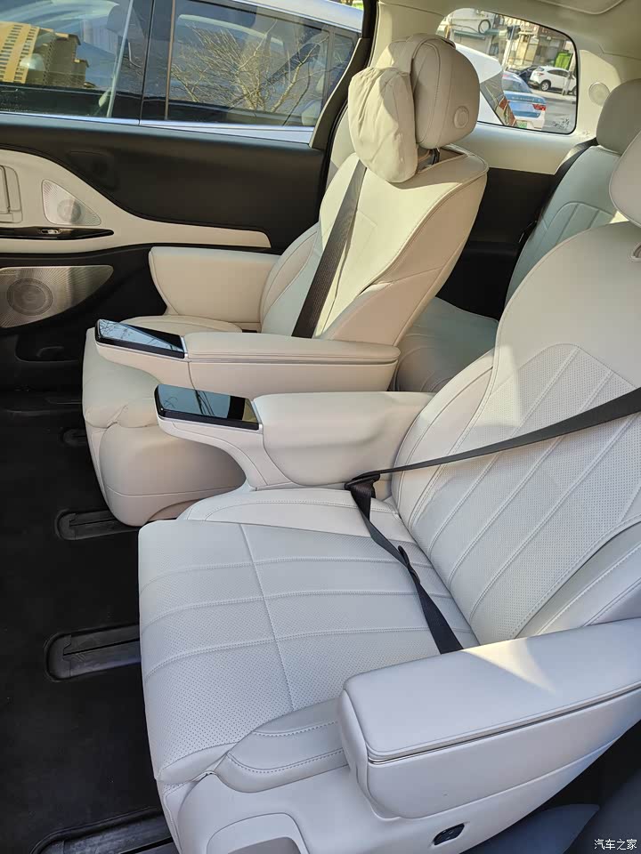 豪华舒适:尤其是三块大屏,孩子上车后抢着看电视,内饰用料高档,环保认证的座椅,配备多区空调、座椅加热/通风等功能。