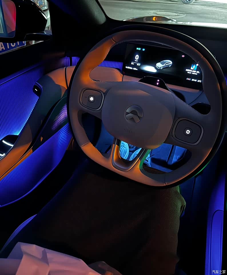质感与氛围兼具,细节满分。内饰是我选择ET5T的重要原因之一。我选的是金沙米色的内饰,搭配Heptax合成皮材质,整体质感非常高级。座椅的触感柔软细腻,坐上去非常舒适,长时间驾驶也不会觉得累。 车内氛围灯的设计也是一大亮点。灯带可以根据心情或场景自由调节颜色和亮度,夜晚开车时,整个车内氛围非常温馨浪漫。再加上全景天幕的加持,车内空间显得更加通透,自驾出游时,坐在车里欣赏窗外的美景,真的是一种享受。