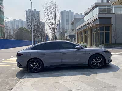 汉的侧面造型非常优雅,尤其是从车头延伸至车尾的那条腰线,流畅自然, 很吸引人。