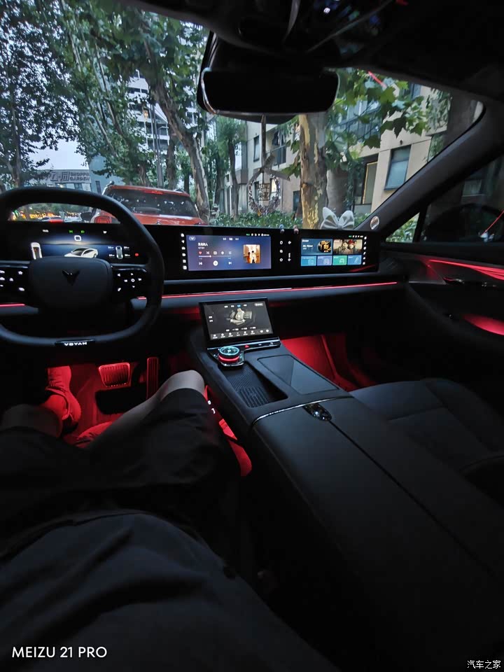 智能化方面这款车只能说中规中矩,没有很突出的点,也没有表现的多差,目前来说够用,前排三联屏,左一驾驶屏,中间中控屏,右边娱乐屏,中间下方还有一个车控屏,后排还有一个老板屏,感觉这车最不差的就是屏幕了😅