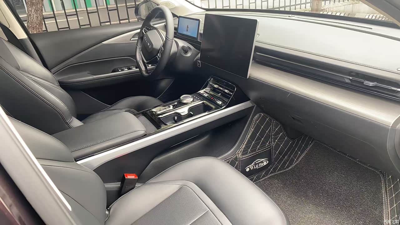 星光内饰的话还是比较简洁的,但是简洁并不简约,柔软的皮质材料包裹让我们摸起来都非常的舒服,也非常的柔软,这个车的中控台上有1块15.6英寸的大屏幕,看起来科技感还是满满的,别具一格的旋钮换挡,让整个空间都看起来腾出来不少,也非常舒服。而这个内饰的味道也相当的不错,没有新车那么强烈的味道,闻起来还还挺舒服的。