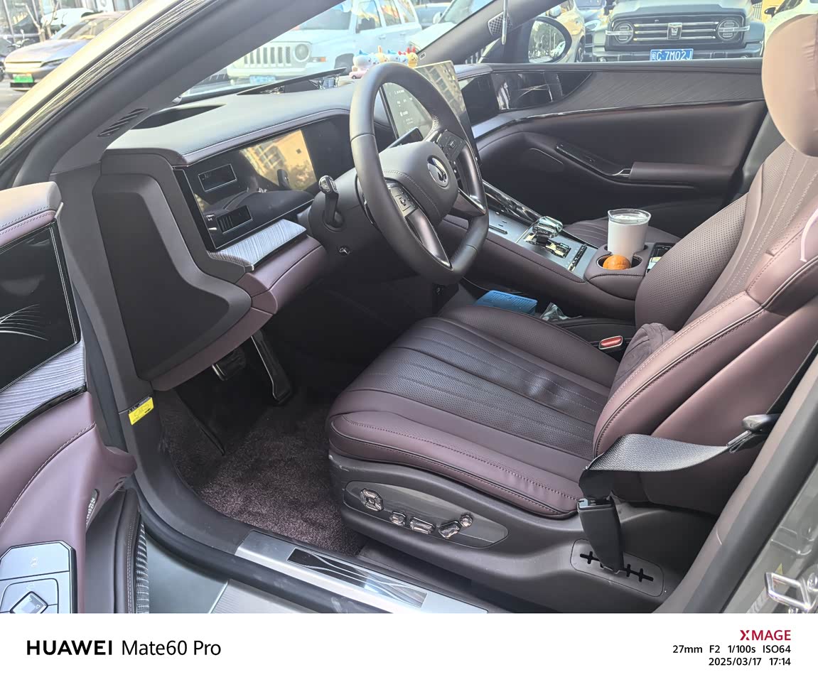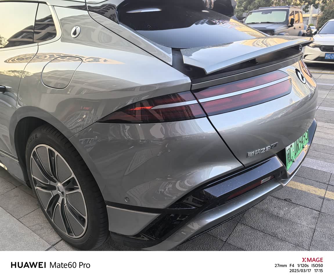 说最满意之前先说说选车的历程。好像极少有男生不爱关注车,作为一个喜欢关注最新车讯的小年轻,这个车打从预售我就一直关注。这买车是因为要结婚打算买一台婚车,首先关注的点是外形要好看,然后内饰要高级一些,驾驶感受好。作为华为铁杆粉丝和问界M5的老车主,最开始看的时候还是比较倾向华为系的车,觉得各方面都比较符合预期。最开始试驾的是享界S9,我个人是比较喜欢的一个车型,颜值,内饰和驾驶体验都是一级棒,但是预算有点超了,所以放弃。后面又陆续去试了智己L6,阿维塔12,特斯拉毛豆Y,和智界R7,总体感觉下来最先淘汰的就是特斯拉,那内饰真的一言难尽,和同价位国产车比起来说是毛坯也不为过了。智己不知道是座椅太低了还是什么原因试驾完感觉有点压抑也淘汰了,阿维塔12本身对车子还是很满意就是4S店有点太远了一直没去谈价格后面也没兴趣再去了。正打算订智界R7的时候朋友让陪他去试驾下腾势,结果一整个爱住了!外观上,它融合了大气与时尚,车身线条流畅且富有力量感,前脸独特的设计极具辨识度。内饰采用了大量高档材质,座椅的皮质柔软且包裹性强,菱形缝线工艺尽显精致。空间方面,坐在后排也能很轻松的翘着二郎腿!当然最让我决定追加预算上Z9GT的还是它的黑科技,圆规掉头,蟹行模式,极致转弯和高速爆胎稳定,我相信没有一个男人能拒绝。