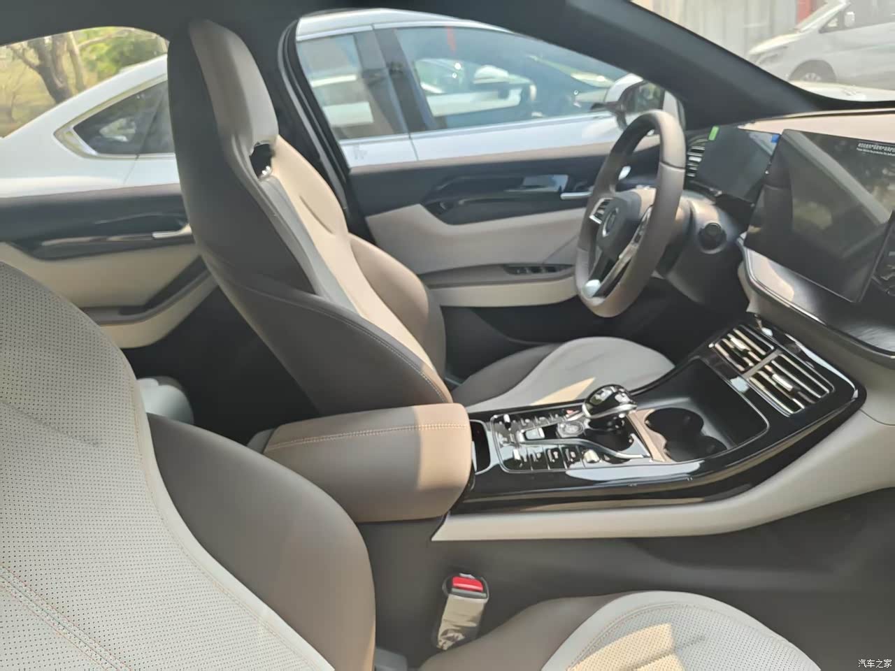 内饰进步明显,软包材质覆盖面积大,旋钮阻尼感细腻。新的配色耐脏且有质感,中控台布局合理,常用功能触手可及。晚上氛围灯亮起,营造出舒适的驾乘氛围,完全不像十万块的车内饰。