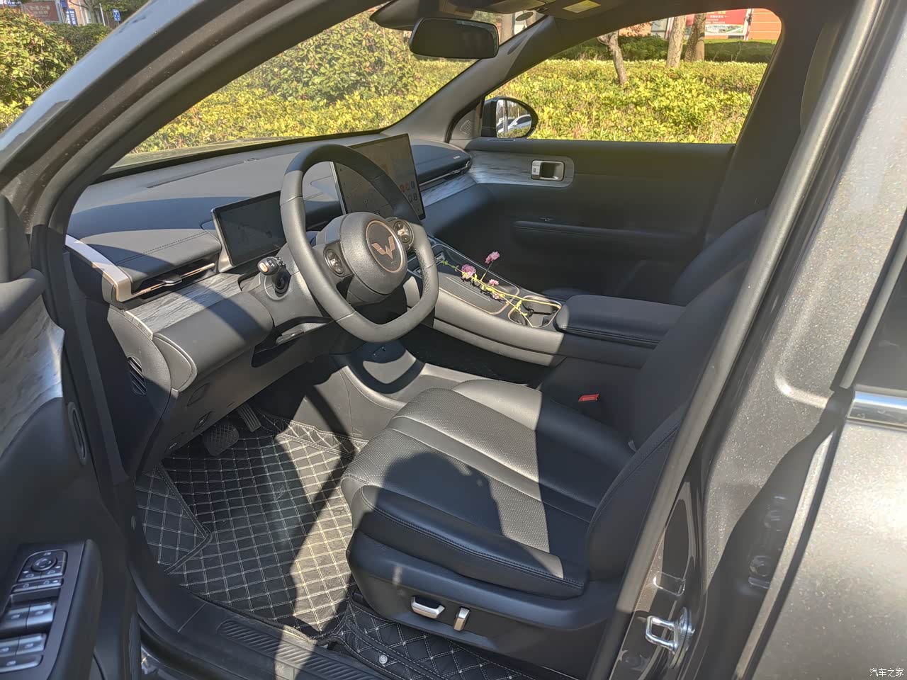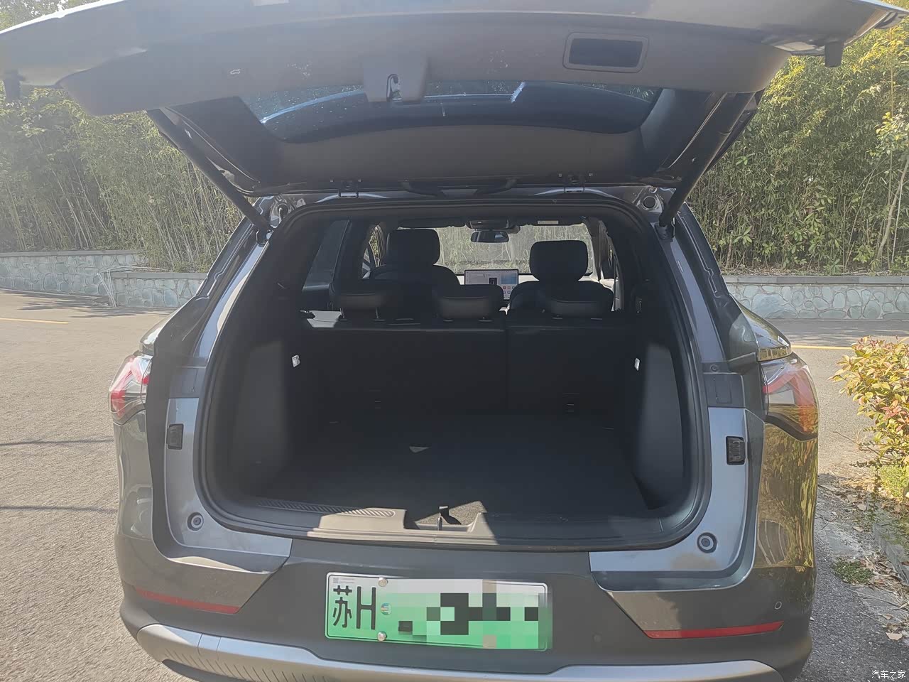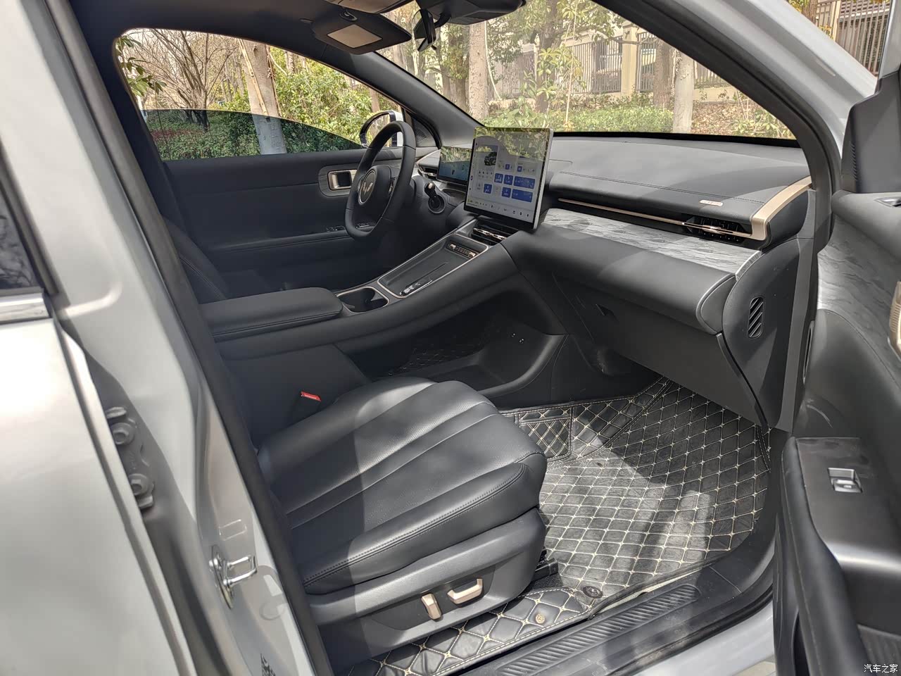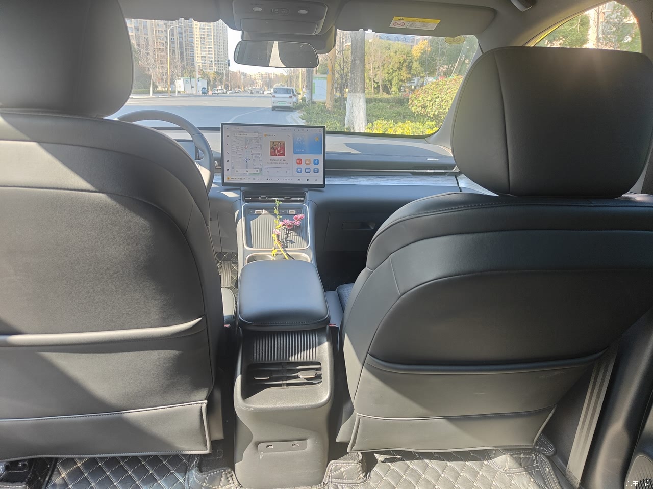我选择的内饰是经典黑色,也是觉得黑色耐脏易打理,车内是做的木纹皮料拼接设计,拉升了车子整体的视觉档次,设计精致高级,手能触摸到的地方都做了软皮全包,不会有那么强的塑料感。座椅软硬适中,车内有两个悬浮式大屏,一个8.8英寸一个15.6英寸,它也很智能,配有灵犀系统,实现了人机无障碍对话,即便我连续对话基本上它也可以精准识别。语音可以完成很多手动操作,给我驾车过程中带来很大安全保障。