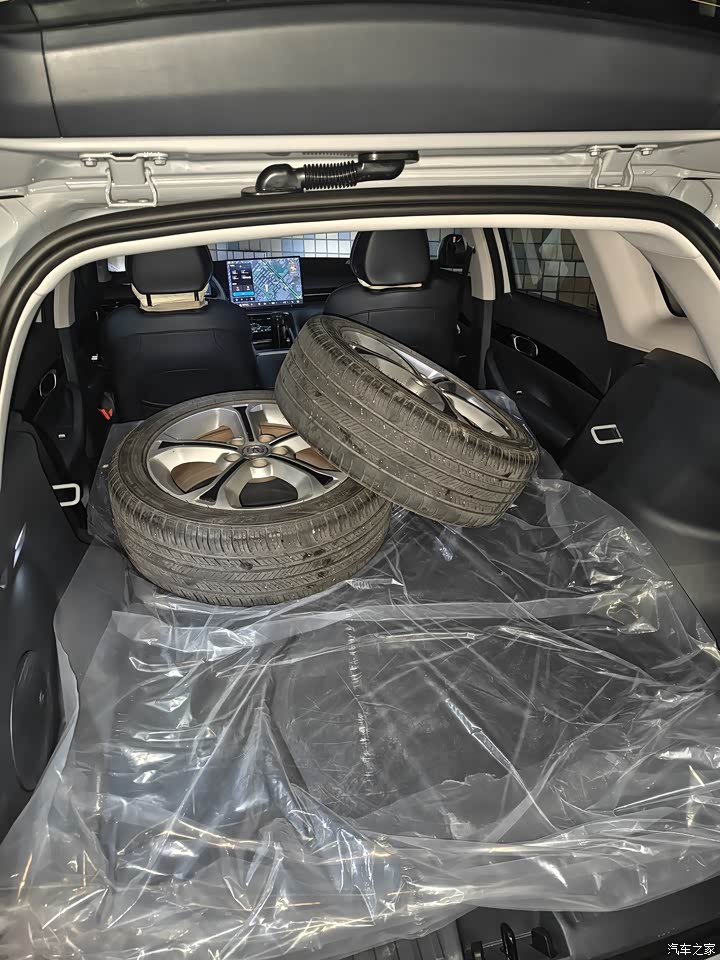 银河E5这空间,大得超乎想象!一拉开车门,宽敞感扑面而来,前排的腿部和头部空间相当充足,驾驶时丝毫没有局促感,轻松调整到舒适坐姿。 本以为车的外观设计这么出彩,空间上会有所妥协,没想到完全是我多虑了。后排坐下三个成年人轻轻松松,膝盖离前排座椅还有好一段距离,中间乘客也不会觉得憋屈。 后备箱更是让人惊艳,容积超大,我拿来装了4个旧车的轮胎空间还是很足!完全不用担心放不下,实用性满分。