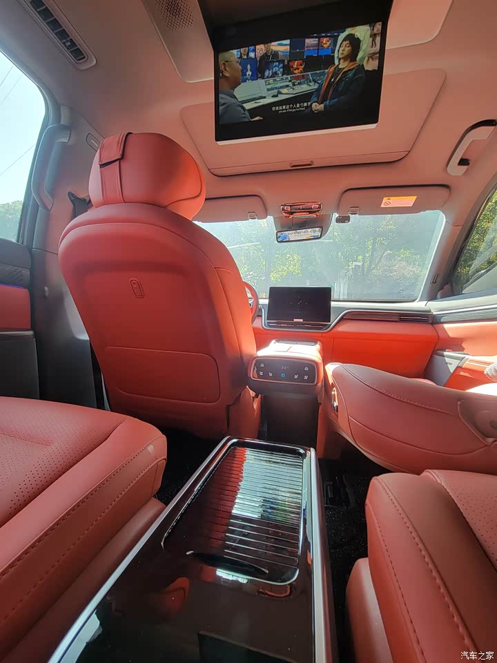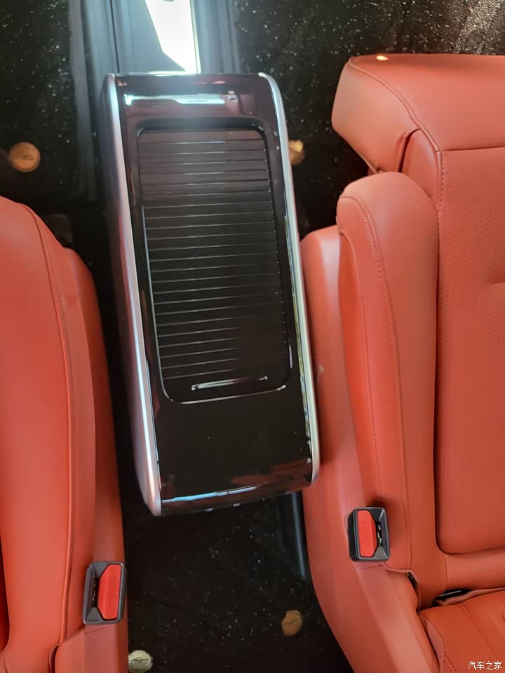 手可以触摸的位置基本上采用软包,手感还可以,唯一感觉不够精致的是窗的位置采用一种黑灰的软性材料,感觉和一层海绵差不多,平淡无奇。不过好在基本没什么味道。后排窗子配有伸缩遮阳帘,质量感觉不是很好,很担心会断掉。第二排两侧各有两个扶手,方便老人和孩童上下车,这还是蛮贴心的。但扶手冰箱的位置有点别扭,第一排想拿个东西得回首掏,冰箱如果放在中控台下方膝盖的位置我觉得比在后扶手的位置更好,开口可以向上也可以朝向两边,无论是主驾还是副驾取放东西都比较方便。即便不通电,还可以当个储物柜使用,多少弥补没有手套箱的缺憾。