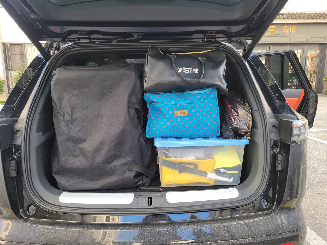 空间是008的一大卖点,5米车身3米轴距,我1米8的个子,在第一二排调整到舒适位置后,第三排能做到腿部还有1拳空间,脚可以放到第二排椅子底下,加上第三排靠背可调,目测最大约有110°,即便是长时间旅行,也不会好拘束。第二排头顶空间不错,第三排如果靠背放直的情况下,我的头发略微能碰到车顶(身高180cm)。后备箱可以分层,感觉可以装4个小行李箱,另外纯电车型还有一个前备箱,体积也挺大,就是打开不方便,需要主驾掰两次开关,关的时候直接用手摁机盖。平时没有满座的情况下,把第三排放倒,后备箱空间更大。