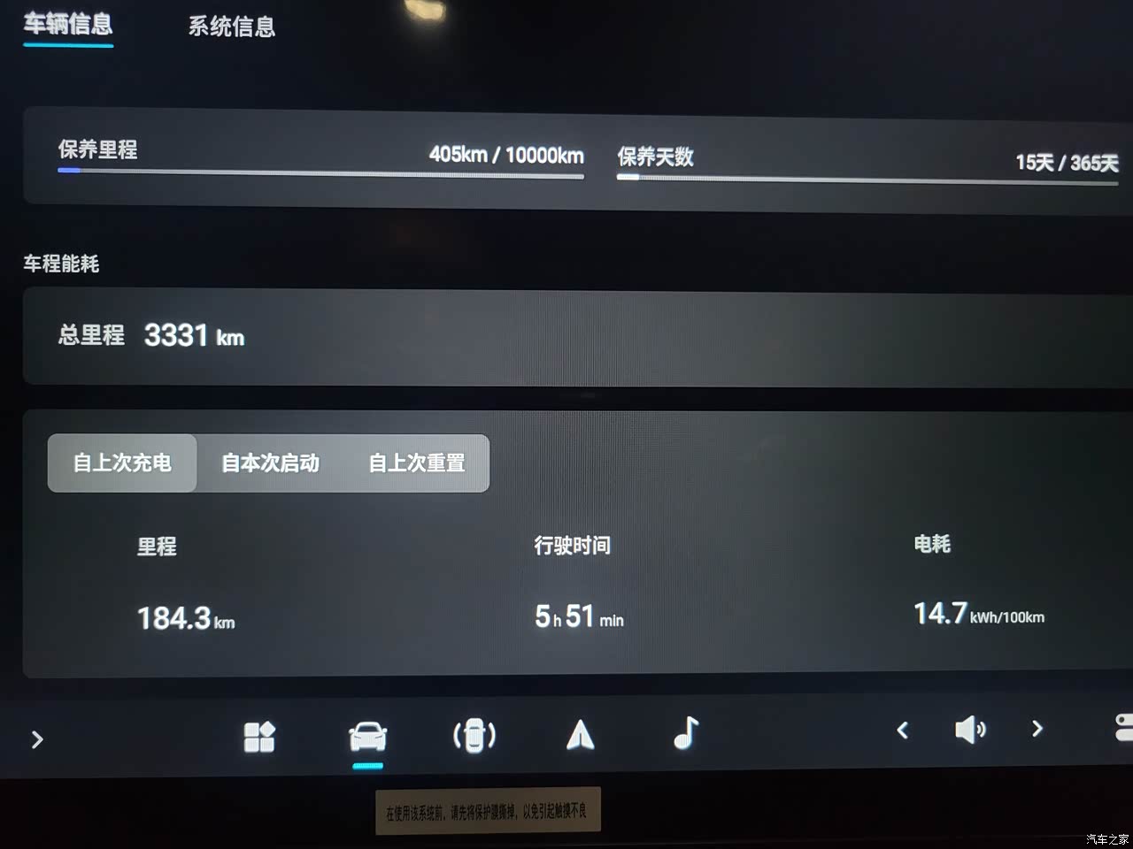 目前车子开了3333公里,可以说,每一次的驾驶都给我带来新的感受,有失望,有惊喜,且听我一一道来。 (一)空间,买这车,首先是奔着空间去的,008采用大轴距,并取消了副手套箱,使得车内空间又增加了一些。平时六座车可以当作大四座使用,无论是几座车,平常坐车人数通常不超过四人,此时,六座车能为每个人提供自己独立的位置,超大的空间,这是何等的享受。得益于大轴距,短车头,前两排的舒适度就不用多说。第三排空间能保证成年人的膝盖有宽裕,加上座椅可以多角度调节,所以舒适性并不差,对孩童来说更为友好,所以我家孩子也会直接选择坐第三排,而且这个位置看娱乐屏的感受也非常不错。春节假期,我们一家六个人外出游玩,对空间很满意,后备箱也很给力,纯电车少了增程器,额外多了一个前备箱,储物空间就更大了。 (二)底盘扎实。试驾的时候就是看中这个车的底盘扎实,经过我的体验,感觉过弯过槛有足够的支持,比我之前的油车感觉要好,过一些跳脚桥时,也明显感受到这个车子比较沉稳,不会出现车尾飞起的情况。电门加速线性平稳,后驱200w电机动力很足,上七八十码很轻松,另有双层夹胶玻璃,和静音轮胎加持,车内比较安静,只有少许的胎噪和风噪,常常不经意间速度就快了,可以说在同级别的车子里还是不错的。刹车灵敏,跟油车感受差异小,我习惯于松电门减速,再配合轻轻的刹车,一来可以让车子行驶平稳,二是可以增加动能回收,降低电耗,这种情况下,开出12,3度的百公里电耗也是很正常的事。 (三)安静舒适。008赠送5个双层夹胶玻璃,马牌静音轮胎,这个配置很高,在柏油路面行驶中胎噪几乎听不出来,可以说是在80时速以下是听不到胎噪声的,整车的密封性和隔音效果比较好,车内比较安静和舒适。相比我以前的油车,胎噪风噪要小很多。最近轮胎被扎破了,补胎时看到轮胎里有厚厚一圈隔音棉,感觉很好。车内配备彩电冰箱,彩电是小朋友们的最爱,一上车就是听歌或者看电视,能够很好的缓解旅途的单调,最近带孩子参加奕派的春日活动,1.5小时的路程,孩子坐后面看记录片,刚刚好。至于冰箱,虽然没用上,但这个可移动冰箱可以当作一张小桌子,用来放东西或打打牌,如果奕派能出一个搭配冰箱的悬浮桌就更好了。