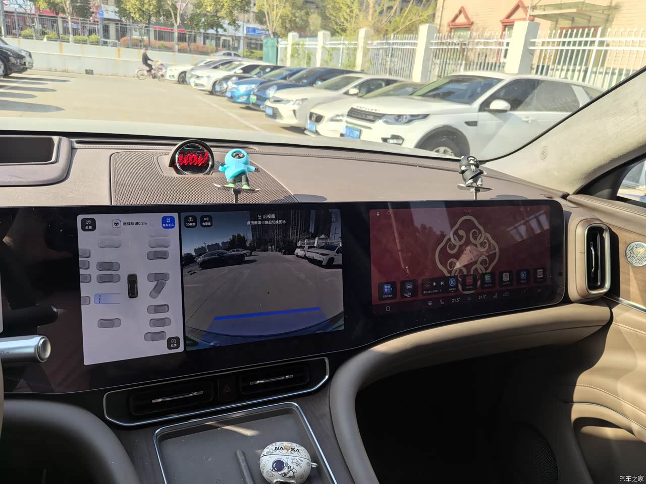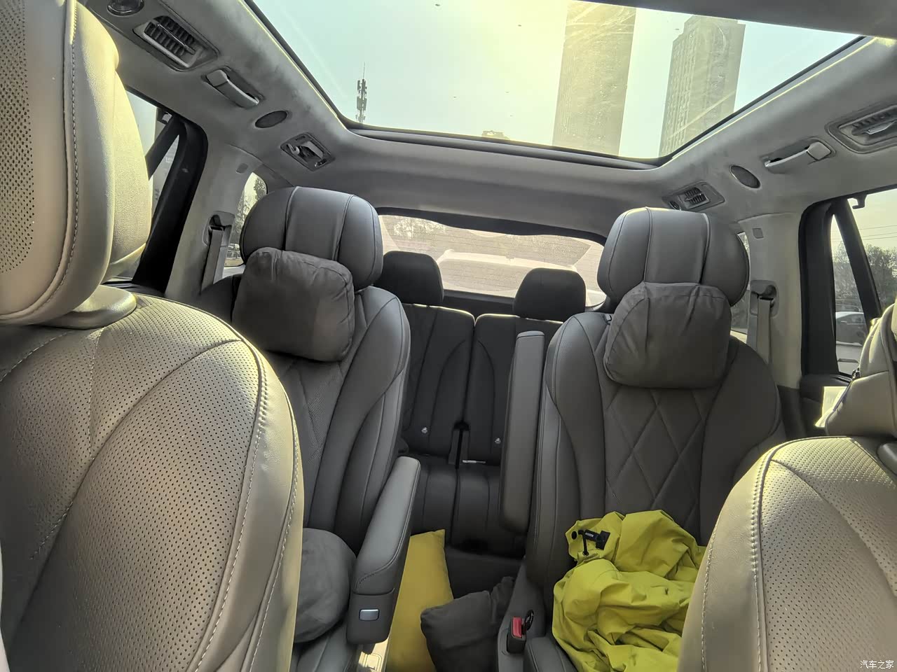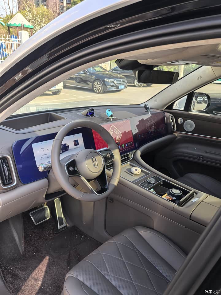 内饰做工很精细,用料很扎实,真皮座椅的皮质柔软舒适有质感,座椅按摩,加热,通风这些功能统统都有。车顶大玻璃,露营看星星很赞,中控台3个大屏幕连在一起,看着很高大上,朋友都说高端大气